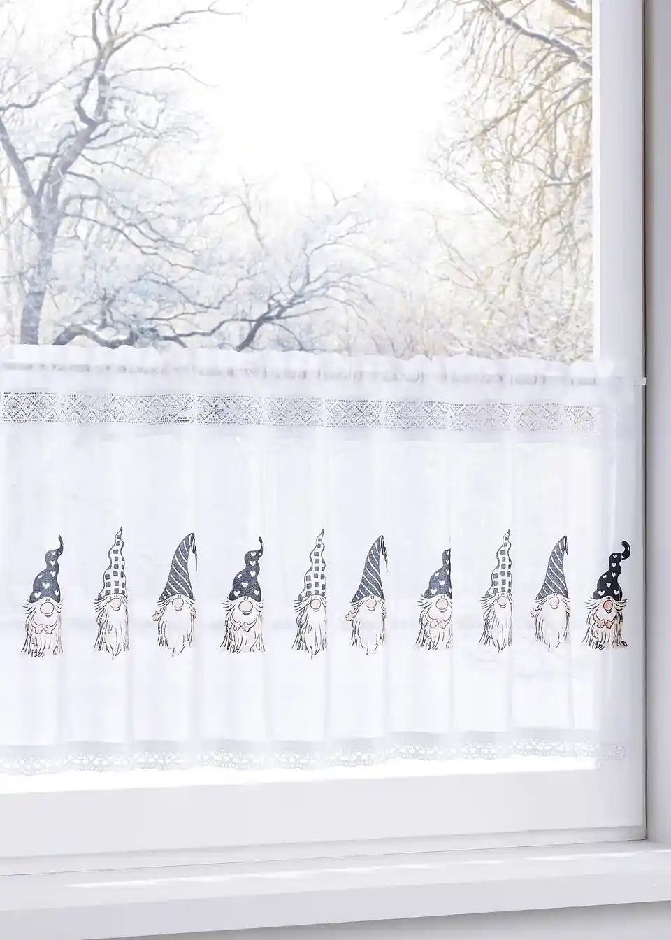 Božićna zavjesa za prozor s patuljcima i čipkom