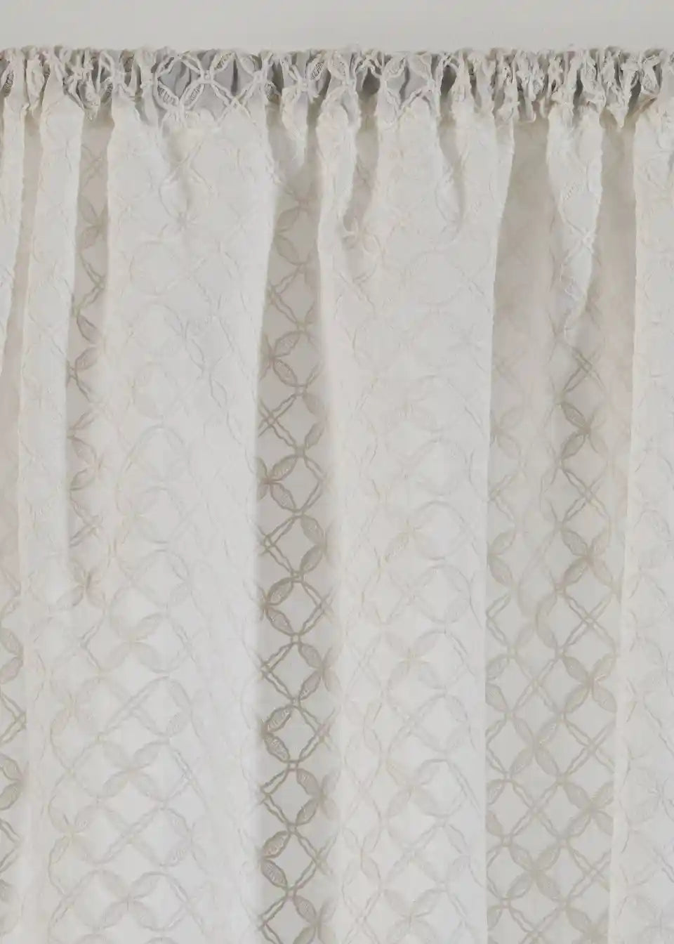 Razigrana zavjesa s prekrasnim detaljima poput veza i kukičanog ruba. Izrađena od visokokvalitetnog bio pamuka.