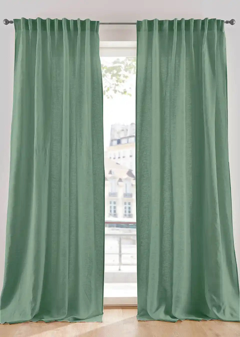 Ova zavjesa sastoji se od mješavine lana i pamuka. Oba su prirodni materijali i daju prirodan izgled. Karakteristično svojstvo lana su elegantne nabore. Svakim peglanjem vlakna postaju mekša i s vremenom se manje gužvaju.