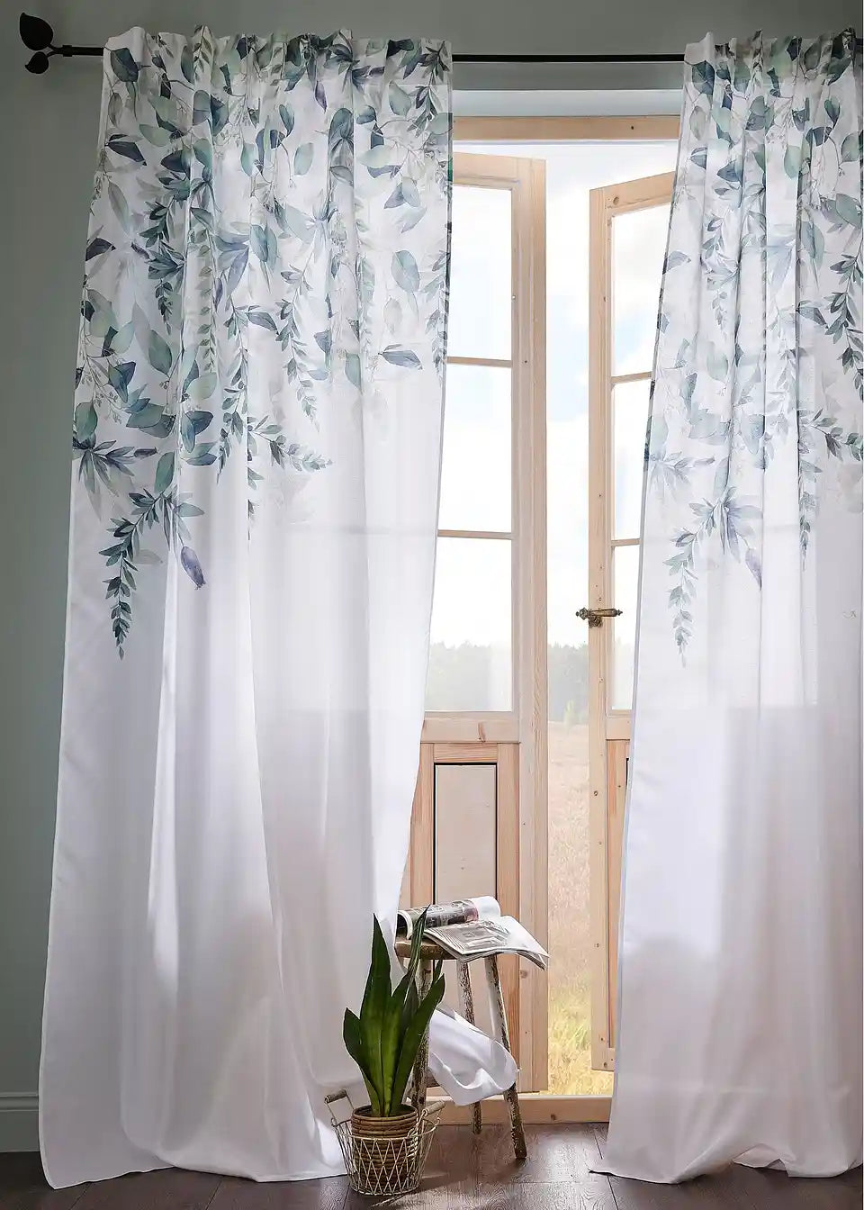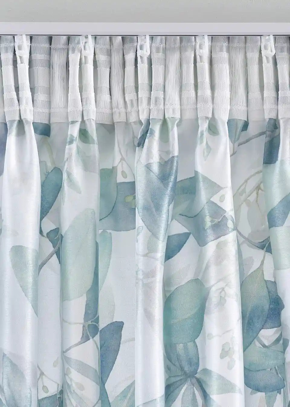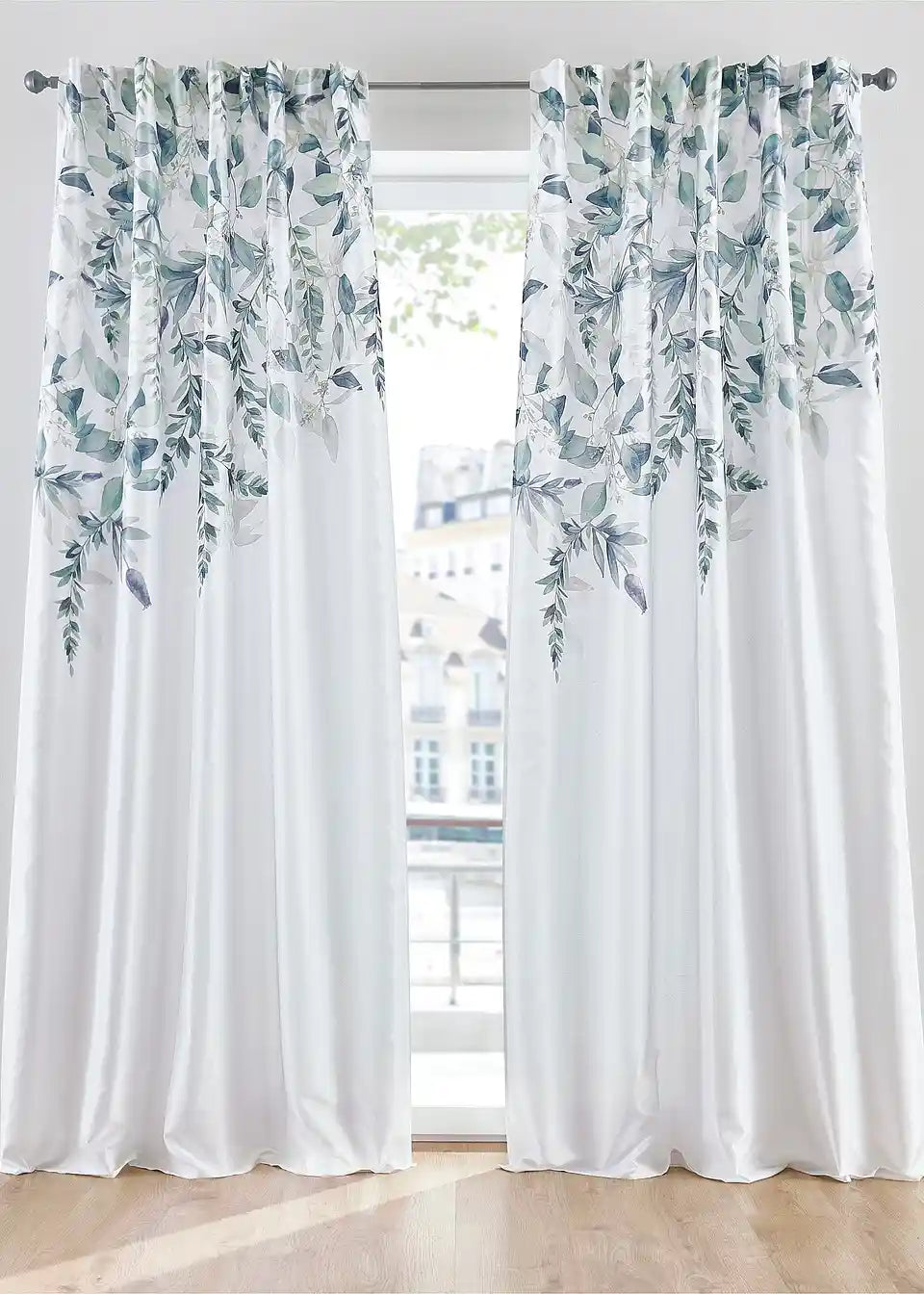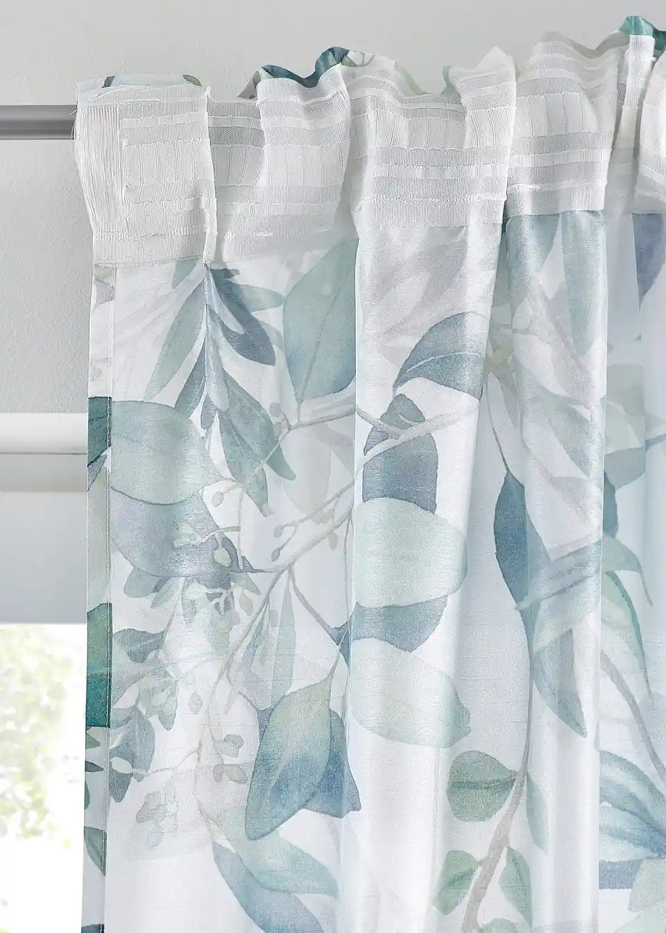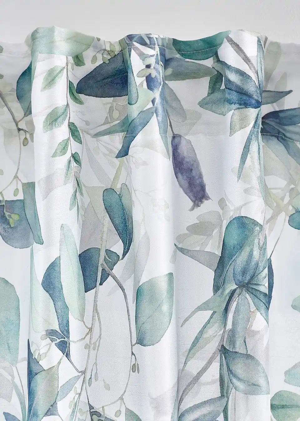 Elegantna zavjesa s prirodnim izgledom i prekrasnim printom lišća koji se stapa odozgo. Time se stvara profinjen izgled, a zahvaljujući visokokvalitetnom materijalu u svilenom izgledu, zavjesa ima blagi sjaj koji čini da Vaš prozor zasja.