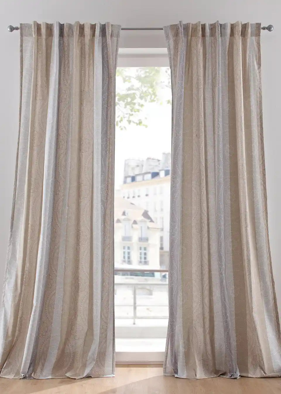 Jesu li Vaši prozori spremni za novo uređenje? Onda će Vam pomoći ova zavjesa. S prednje strane ima grafički uzorak te je izrađena od neprozirne mješavine tkanine. Stražnja strana je svijetla i bez uzorka.