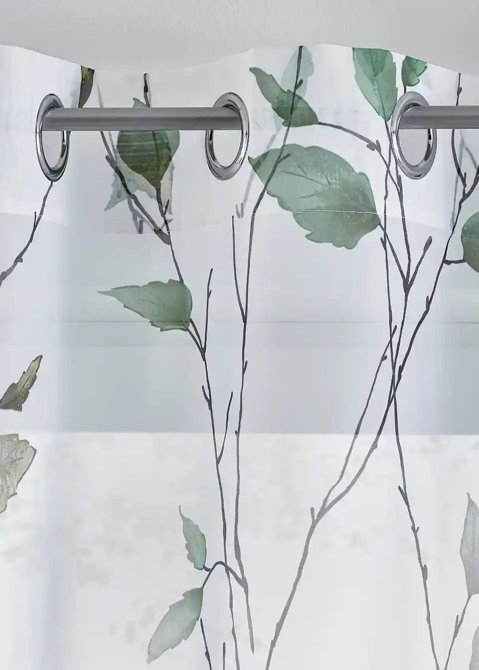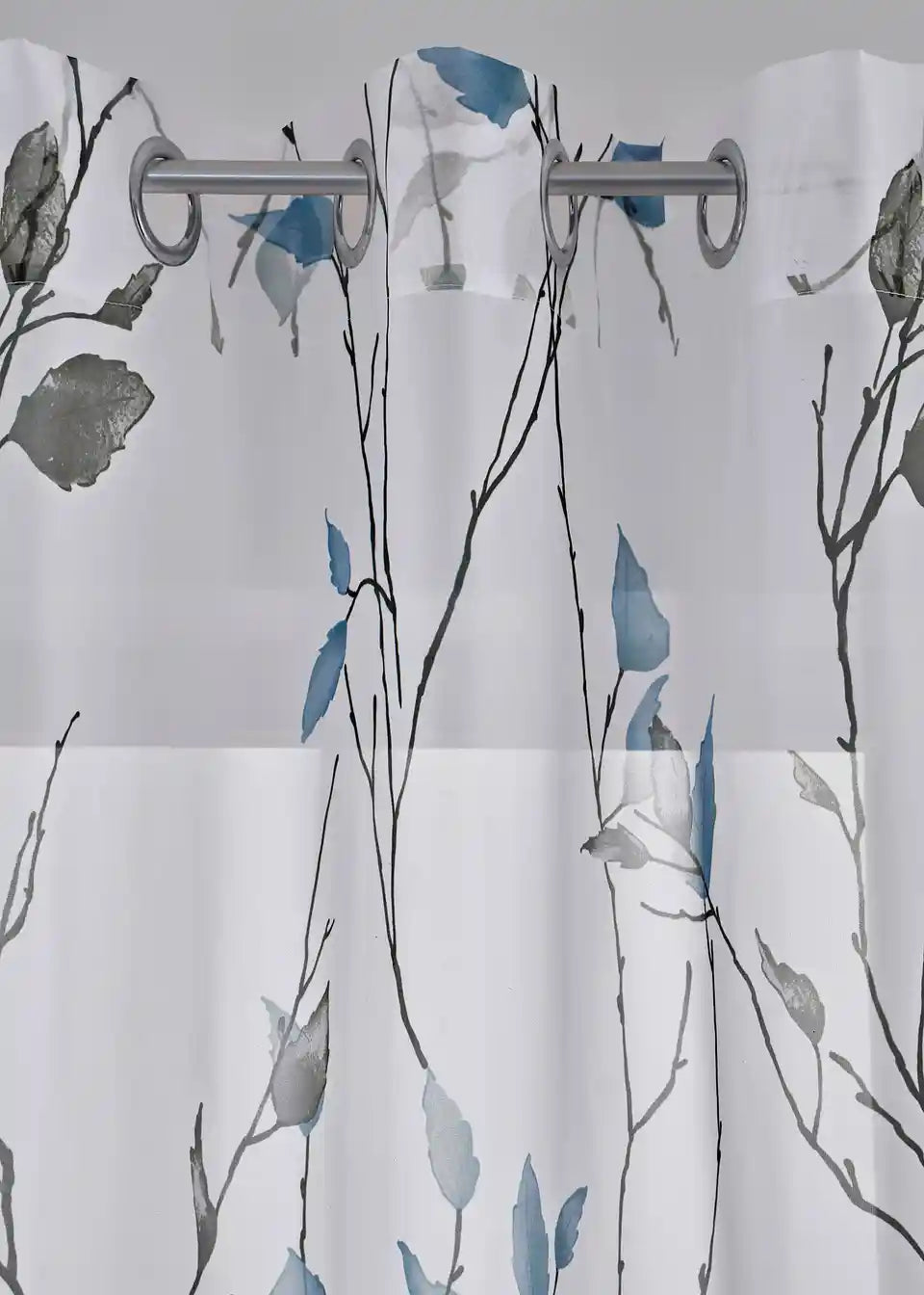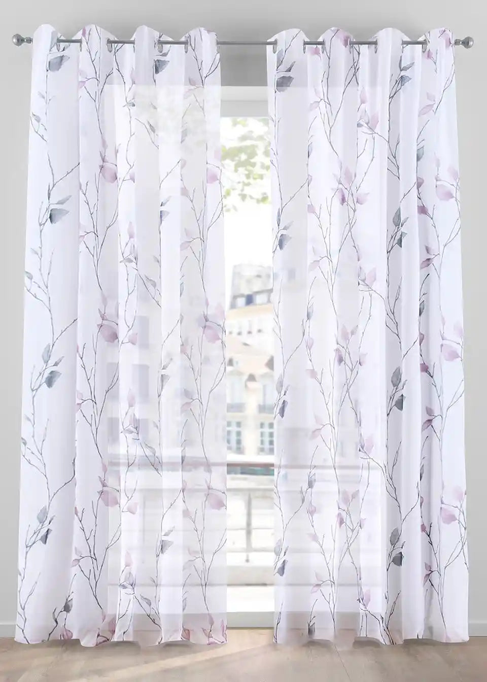 Poput akvarela djeluje cvjetni tisak na našoj prozirnoj zavjesi. Nježne boje i transparentnost zavjese čine prostoriju svijetlom i ugodnom. Izrađena je od tkanine od lako održivog voilea.