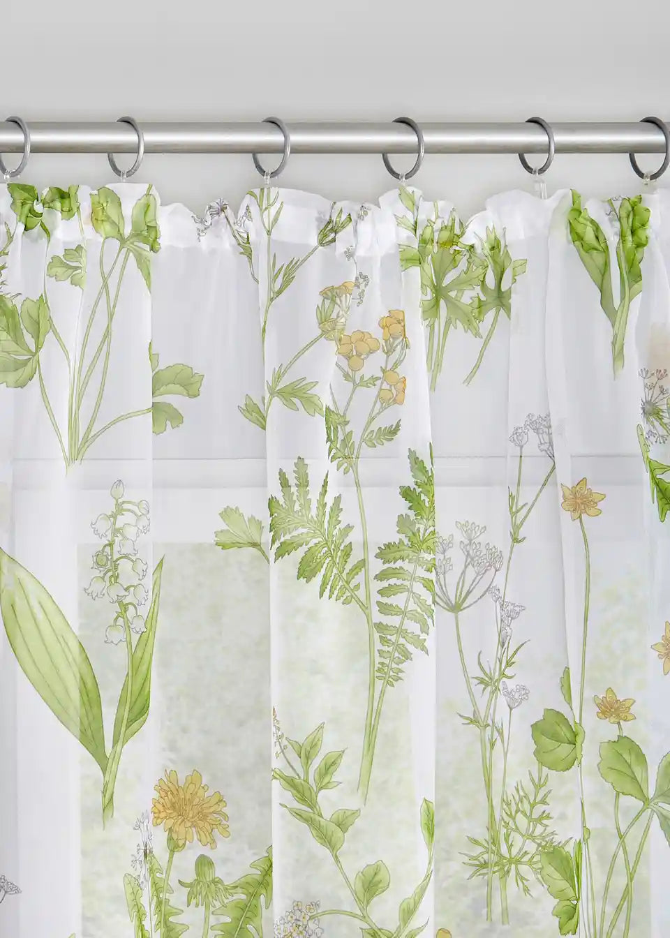 Unesi dašak prirode izravno u svoj dom ovom efektnom dekoracijom za prozor. Zavjesa je tiskana s različitim motivima biljaka. Materijal je fine voile-kvalitete i propušta puno svjetla u prostoriju.
