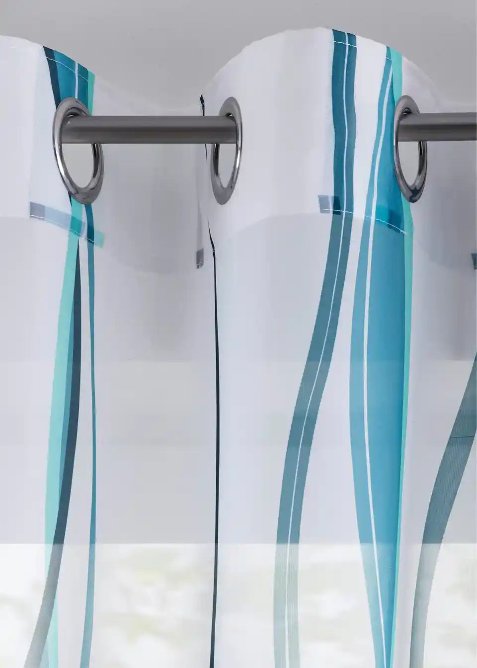 Svjetlopropusna zavjesa u kremasto/bijeloj osnovi s obojenim akcentima, u atraktivnim varijantama boja, od prozračne, lagane voile-kvalitete. Odlična za kombiniranje! Zavjesa je univerzalna jer se uklapa u mnoge interijere i ima bezvremenski dizajn.