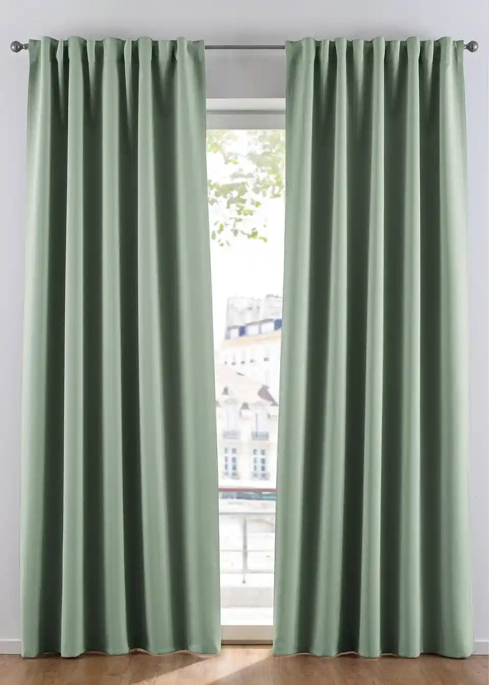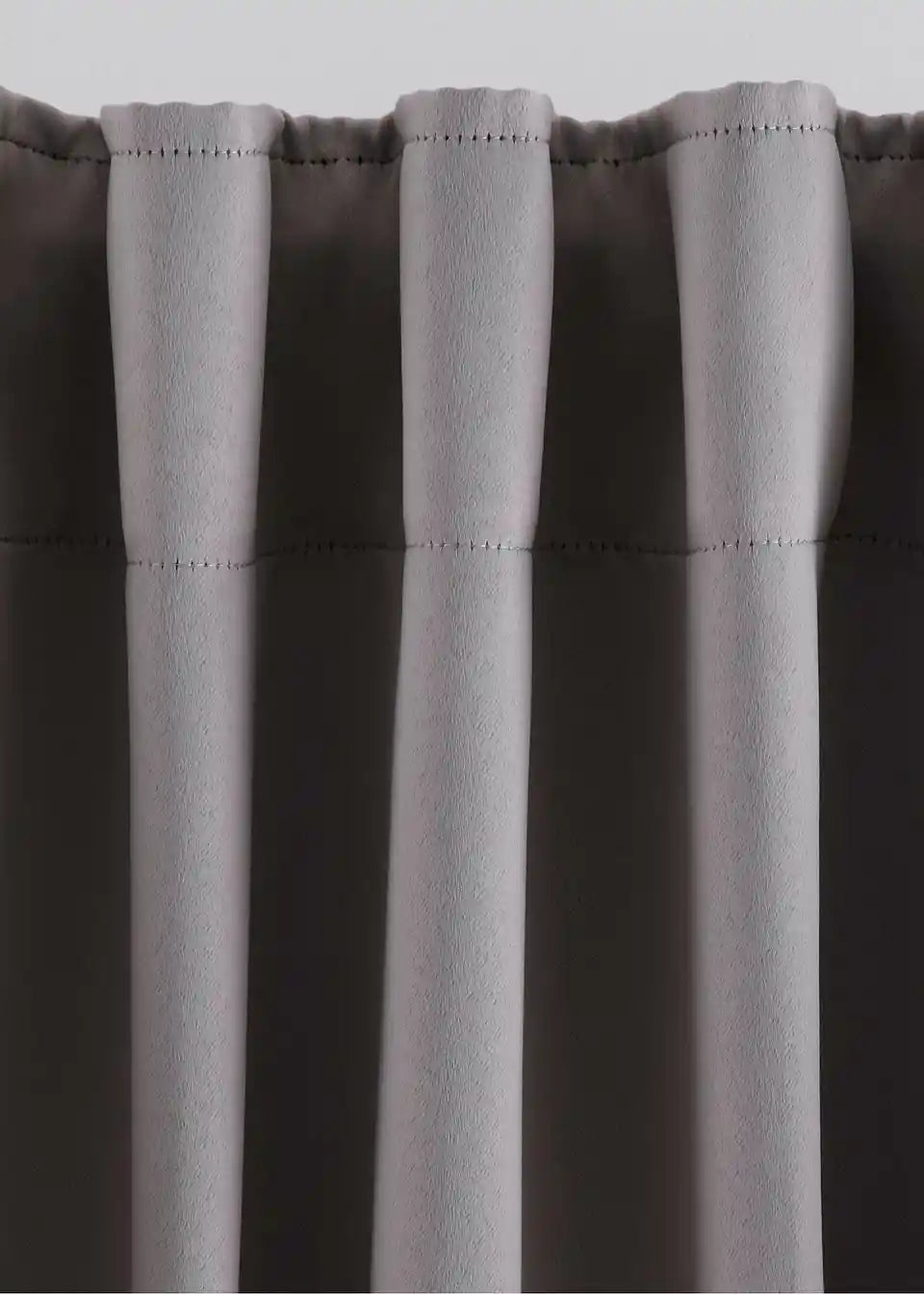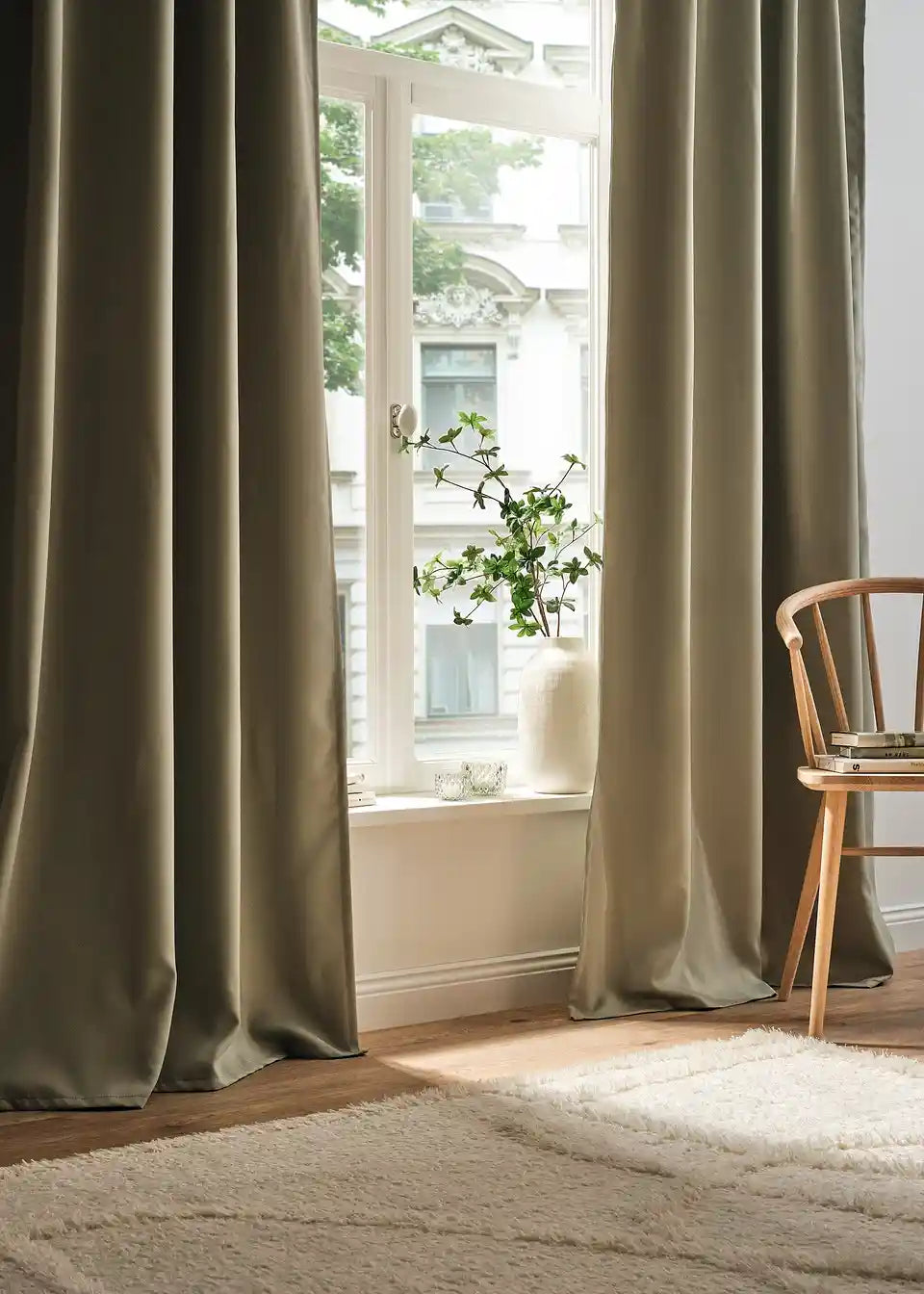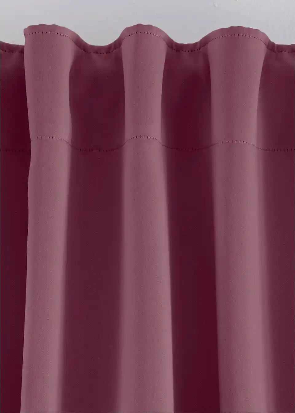 Ova jednobojna zavjesa zahvaljujući svojoj izrazito neprozirnoj i teškoj kvaliteti (cca 230 g/m²) izvrsno je prikladna za zamračenje prostorija. Kao zaštita od svjetla i sunca omogućuje miran san i tijekom dana te štiti od neželjenih pogleda. Zbog svog teškog materijala zavjesa može djelovati energetski učinkovito: hladan propuh ili tople sunčeve zrake se odbijaju. Osim toga, može imati i zvučno-apsorbirajući učinak, tj. buka se prigušuje. Zavjesa je s obje strane jednako obojena i dostupna je u mnogim lijepim bojama u pakiranju od 1 komada. Na raspolaganju je mnogo različitih veličina za mala i do poda visoka okna ili balkonska vrata. Zavjesa je dostupna i u ekstra širokoj varijanti (vidi veličine 5 do 8). Zbog načina pakiranja nastaju nabori. Po potrebi izglačati prije vješanja.
