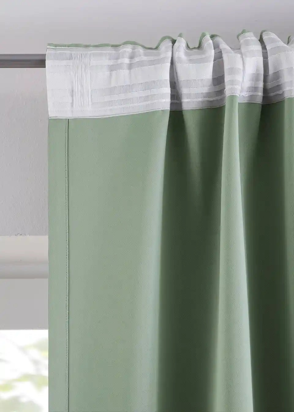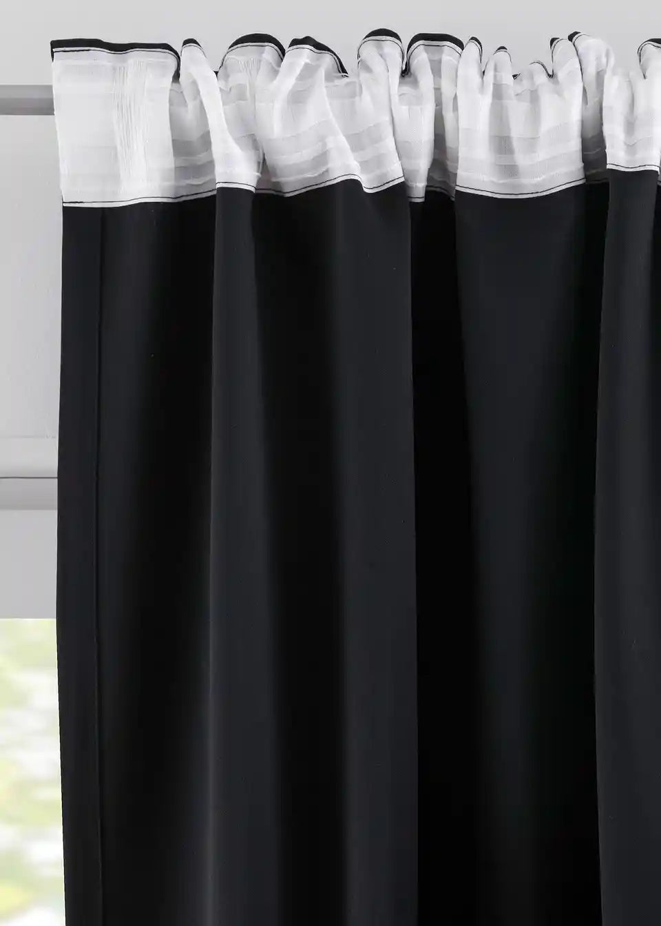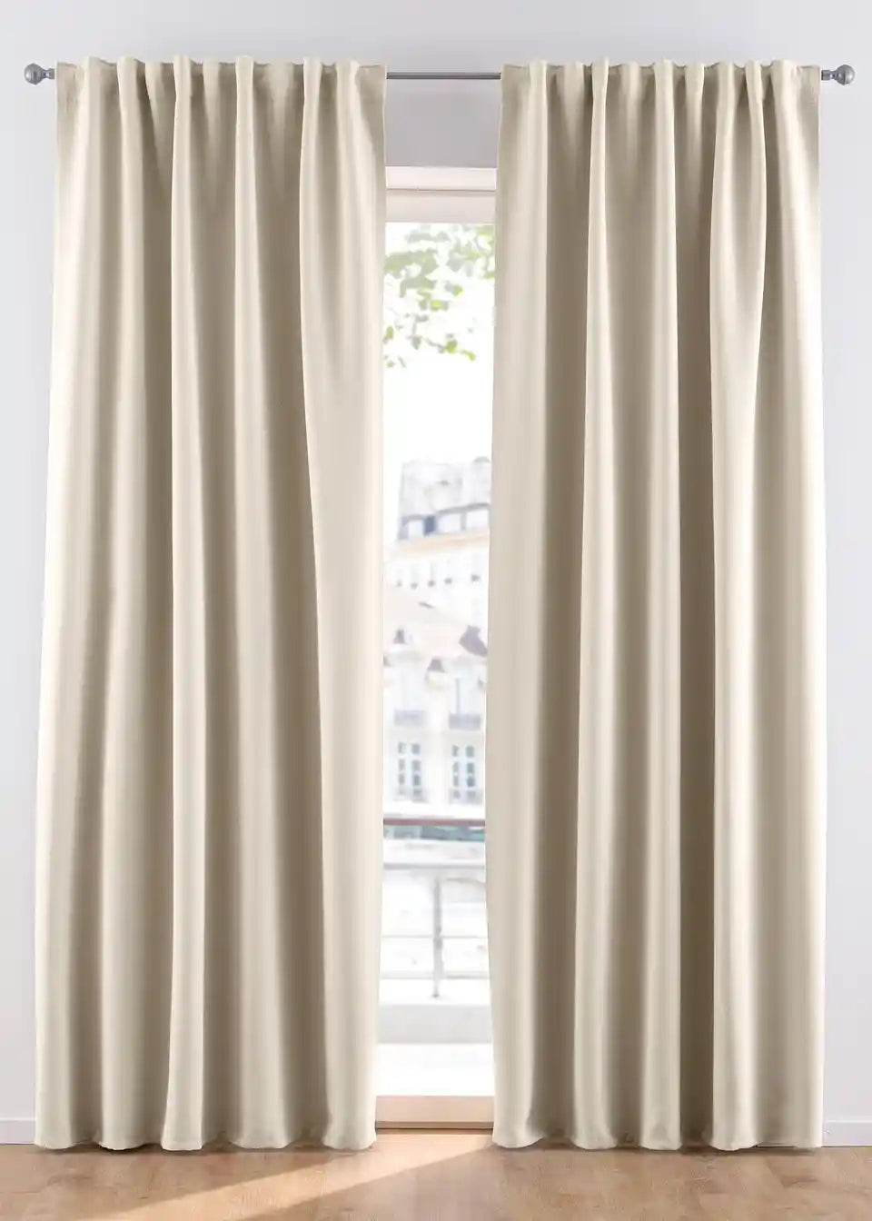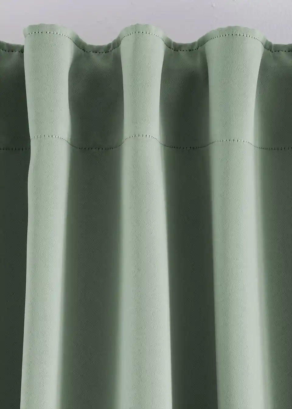 Ova jednobojna zavjesa zahvaljujući svojoj izrazito neprozirnoj i teškoj kvaliteti (cca 230 g/m²) izvrsno je prikladna za zamračenje prostorija. Kao zaštita od svjetla i sunca omogućuje miran san i tijekom dana te štiti od neželjenih pogleda. Zbog svog teškog materijala zavjesa može djelovati energetski učinkovito: hladan propuh ili tople sunčeve zrake se odbijaju. Osim toga, može imati i zvučno-apsorbirajući učinak, tj. buka se prigušuje. Zavjesa je s obje strane jednako obojena i dostupna je u mnogim lijepim bojama u pakiranju od 1 komada. Na raspolaganju je mnogo različitih veličina za mala i do poda visoka okna ili balkonska vrata. Zavjesa je dostupna i u ekstra širokoj varijanti (vidi veličine 5 do 8). Zbog načina pakiranja nastaju nabori. Po potrebi izglačati prije vješanja.