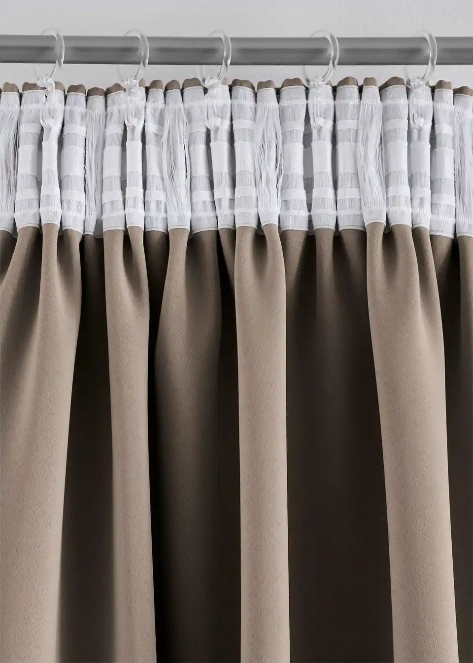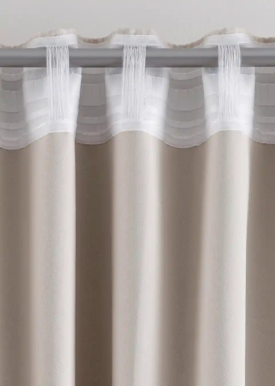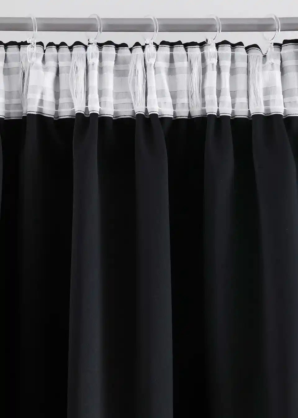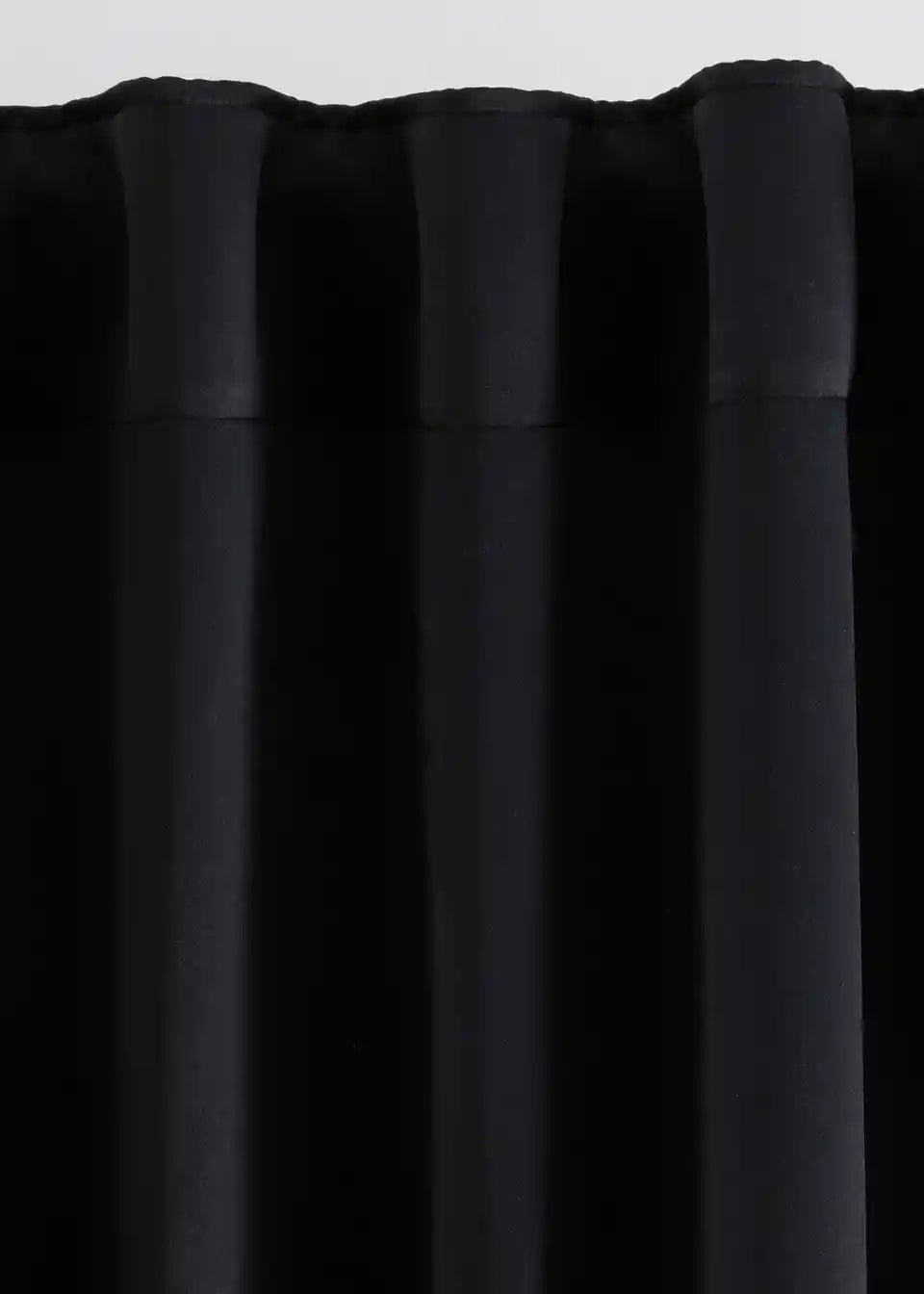 Ova jednobojna zavjesa zahvaljujući svojoj izrazito neprozirnoj i teškoj kvaliteti (cca 230 g/m²) izvrsno je prikladna za zamračenje prostorija. Kao zaštita od svjetla i sunca omogućuje miran san i tijekom dana te štiti od neželjenih pogleda. Zbog svog teškog materijala zavjesa može djelovati energetski učinkovito: hladan propuh ili tople sunčeve zrake se odbijaju. Osim toga, može imati i zvučno-apsorbirajući učinak, tj. buka se prigušuje. Zavjesa je s obje strane jednako obojena i dostupna je u mnogim lijepim bojama u pakiranju od 1 komada. Na raspolaganju je mnogo različitih veličina za mala i do poda visoka okna ili balkonska vrata. Zavjesa je dostupna i u ekstra širokoj varijanti (vidi veličine 5 do 8). Zbog načina pakiranja nastaju nabori. Po potrebi izglačati prije vješanja.