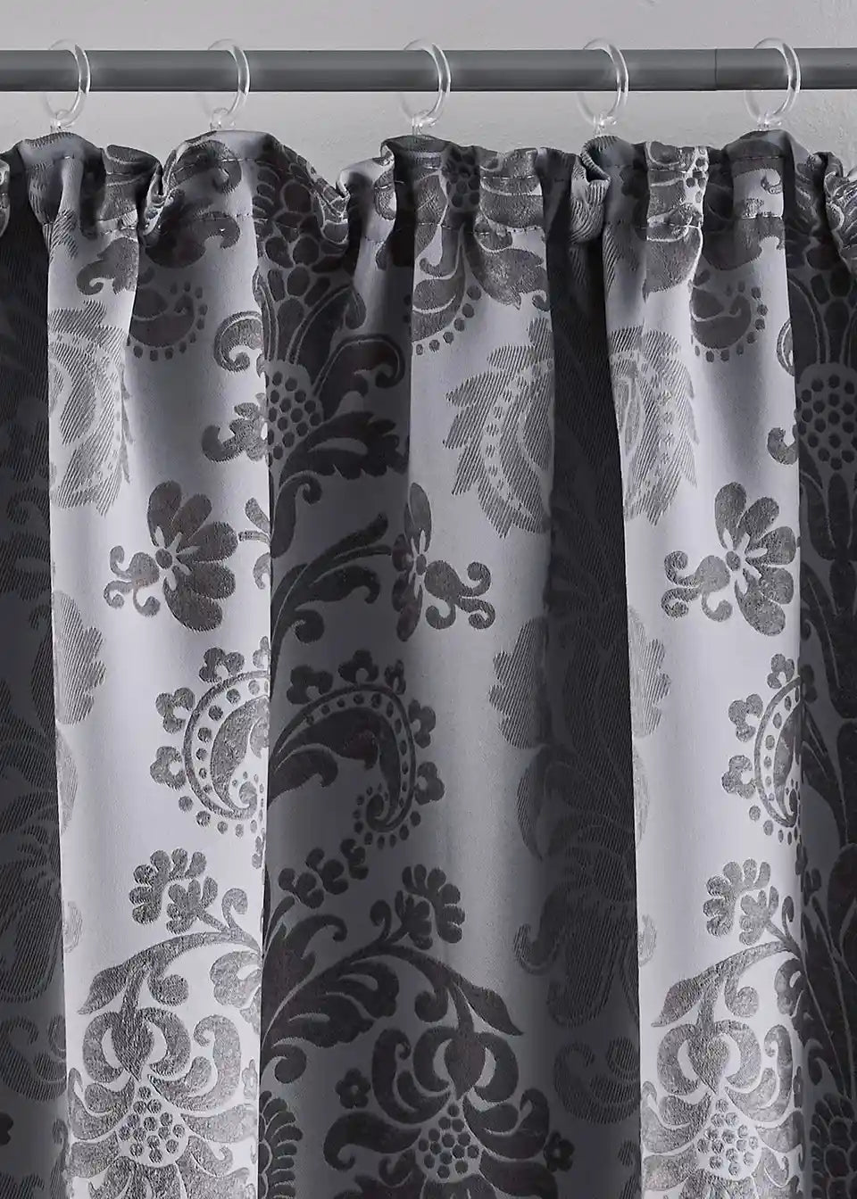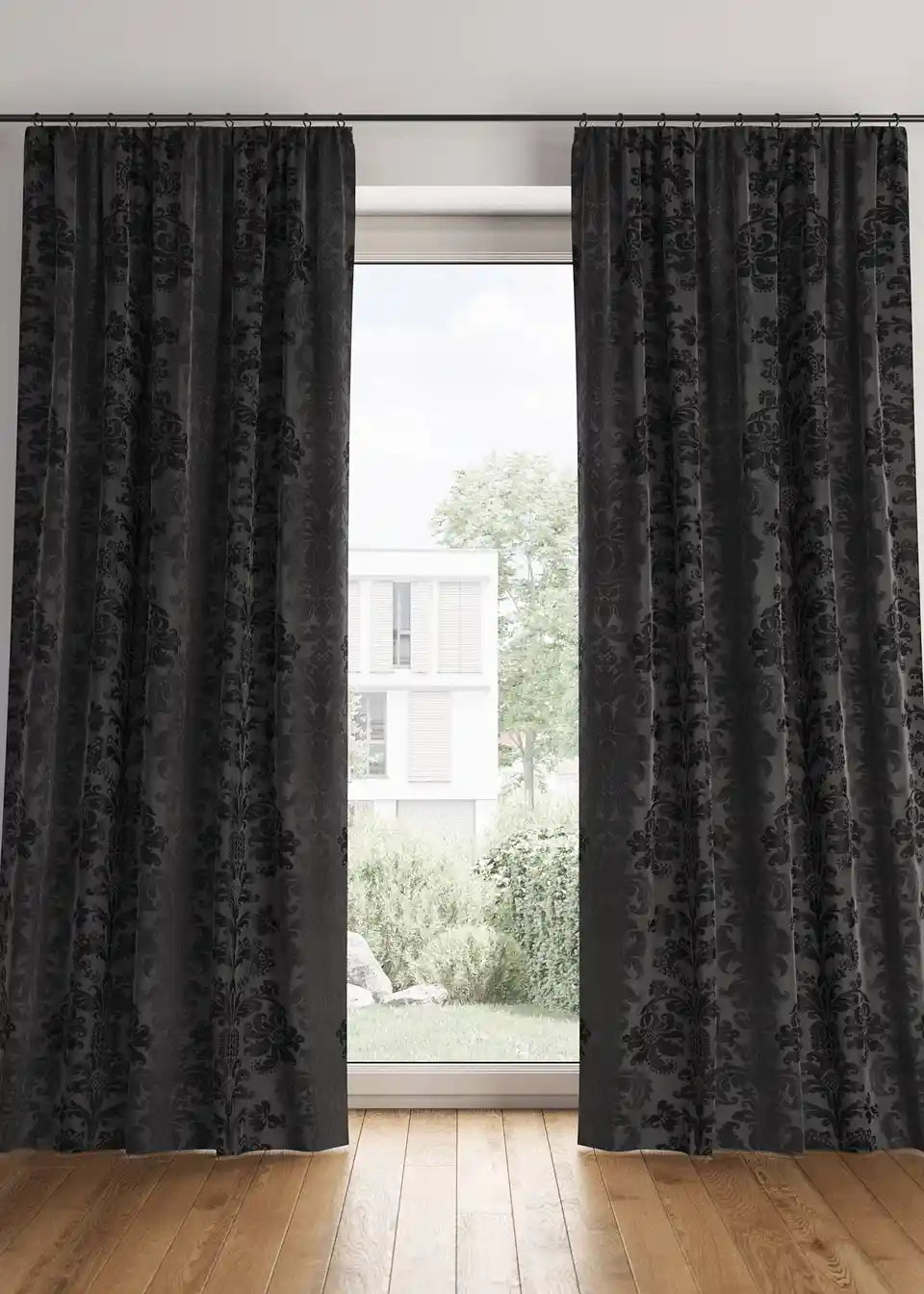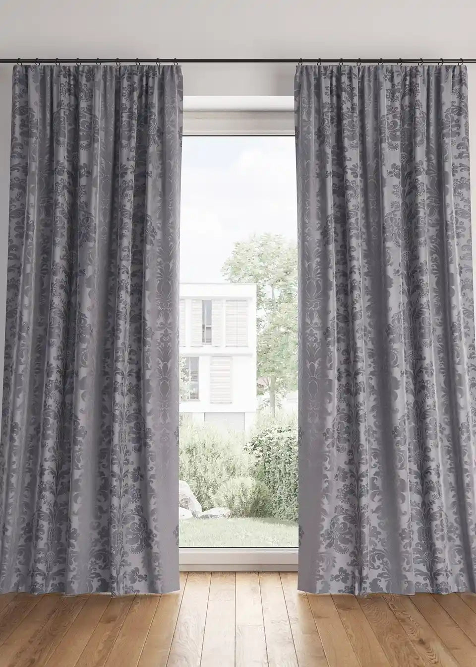 Ova zamračujuća zavjesa zahvaljujući svom teškom materijalu ima energetski štedljiva svojstva: može zadržati tople sunčeve zrake ili hladan propuh. Plemeniti dizajn s ornamentima nalazi se na prednjoj i stražnjoj strani, jer je zavjesa izrađena visokokvalitetnim žakard postupkom. Dvostruka širina (270 cm) obrađena je s središnjim šavom.