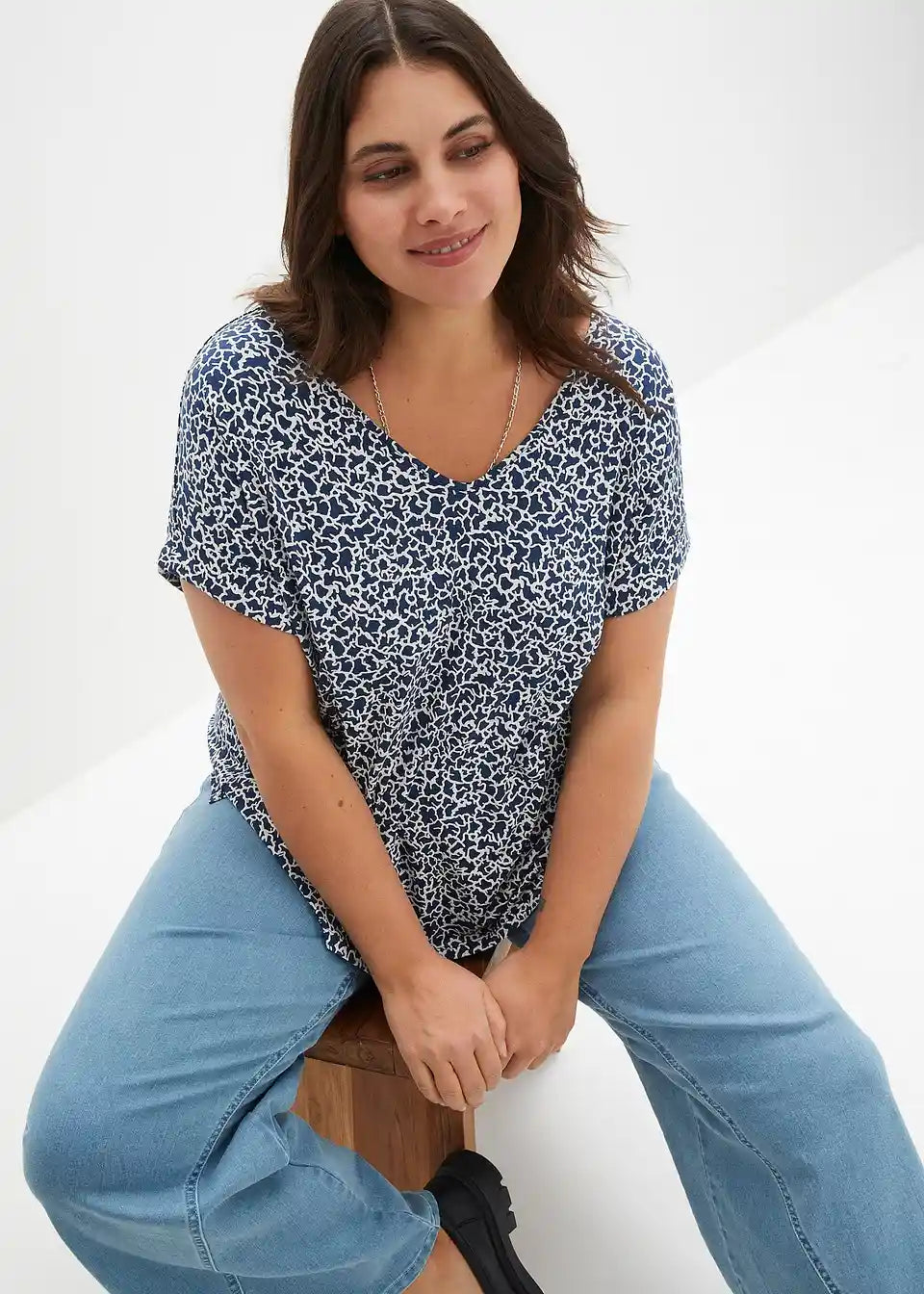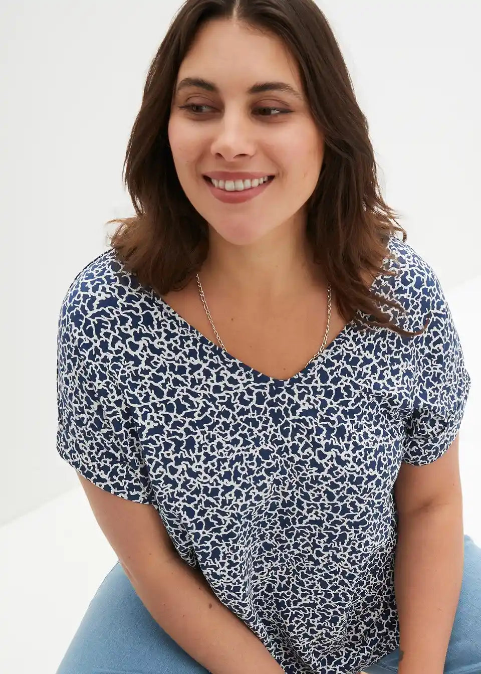 Majica s uzorkom od viskoze s V-izrezom