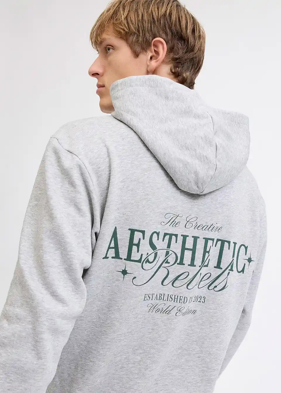 JJ REBEL - Ležerna majica s kapuljačom s kul tiskom na leđima i opuštenim krojem