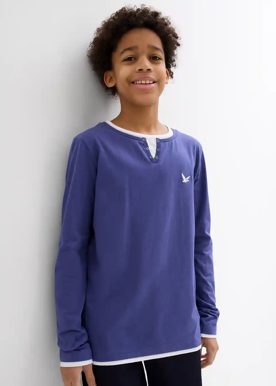 Lijepa 2 u 1 majica dugih rukava za dječake s vezenim detaljem na prsima
