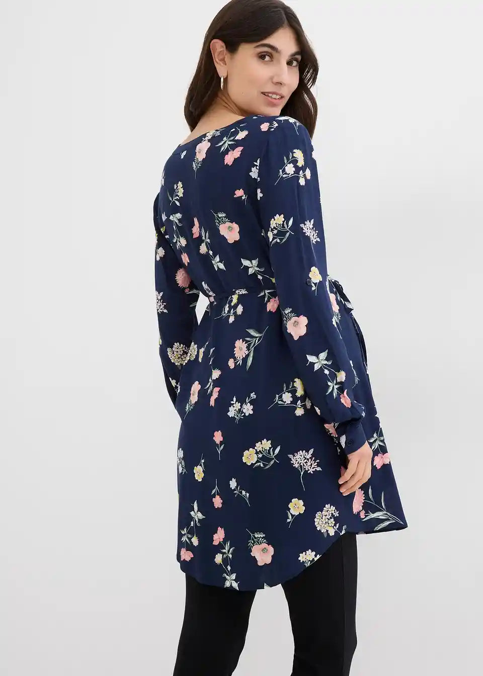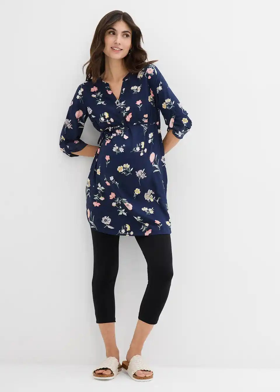 Lepršava duga košulja od mekane viskoze koja laska figuri. Može se nositi kao haljina ili kao košulja. Odlonjiva traka za vezanje naglašava rastući trudnički trbuščić. Dužina rukava se može podesiti pomoću remena i gumba. Nakon trudnoće lako je dojiti zahvaljujući praktičnom zapinjanju na gumbice.