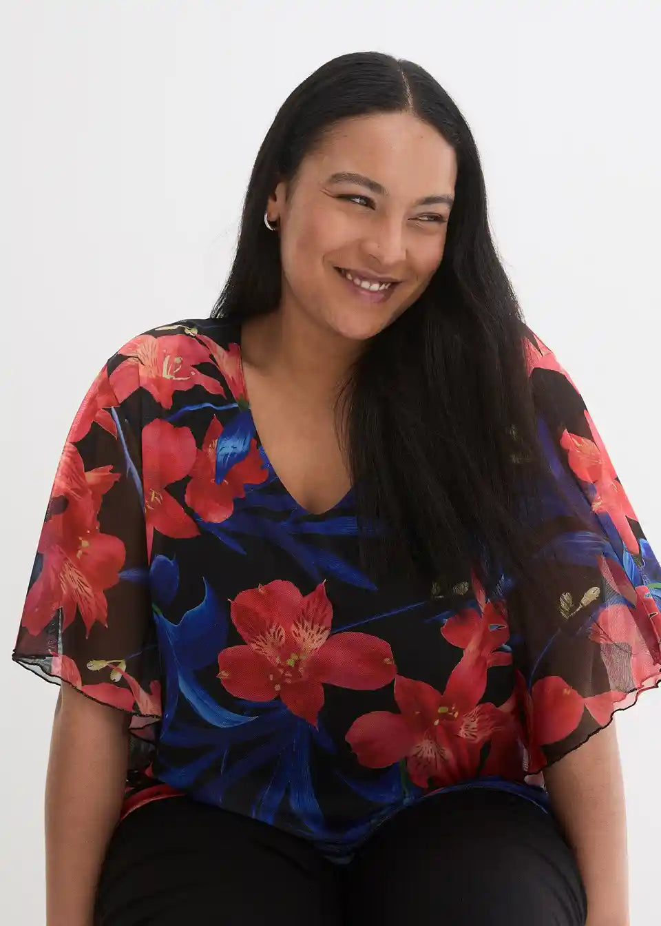 Majica-tunika od mreže sa svježim cvjetnim printom