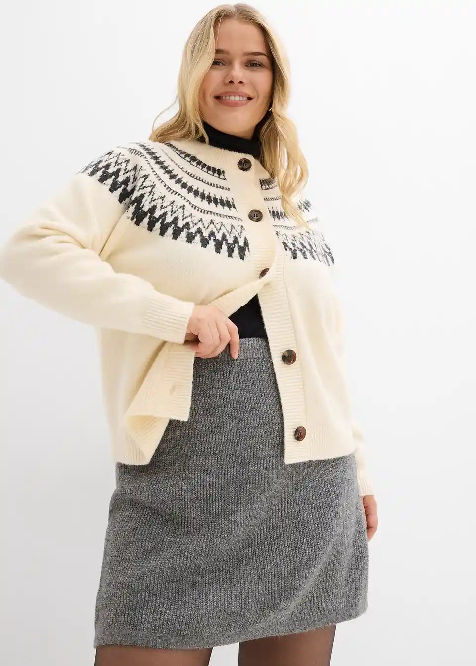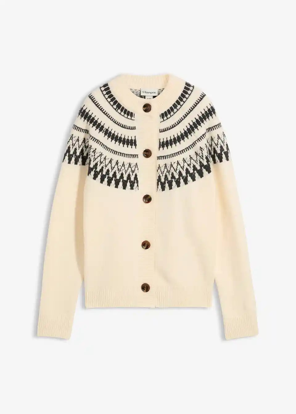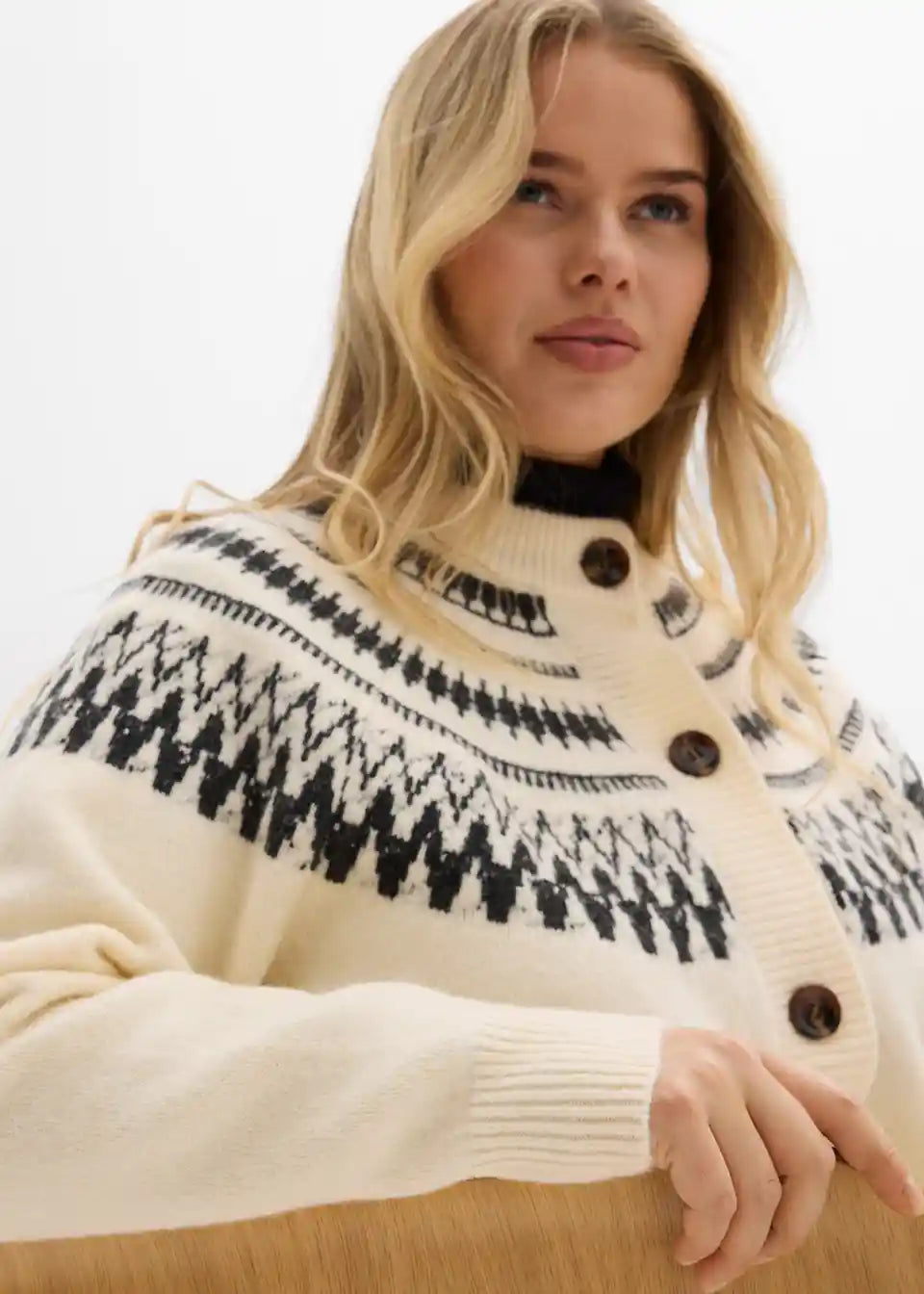 Udoban pleteni kardigan s modernim norveškim uzorkom
