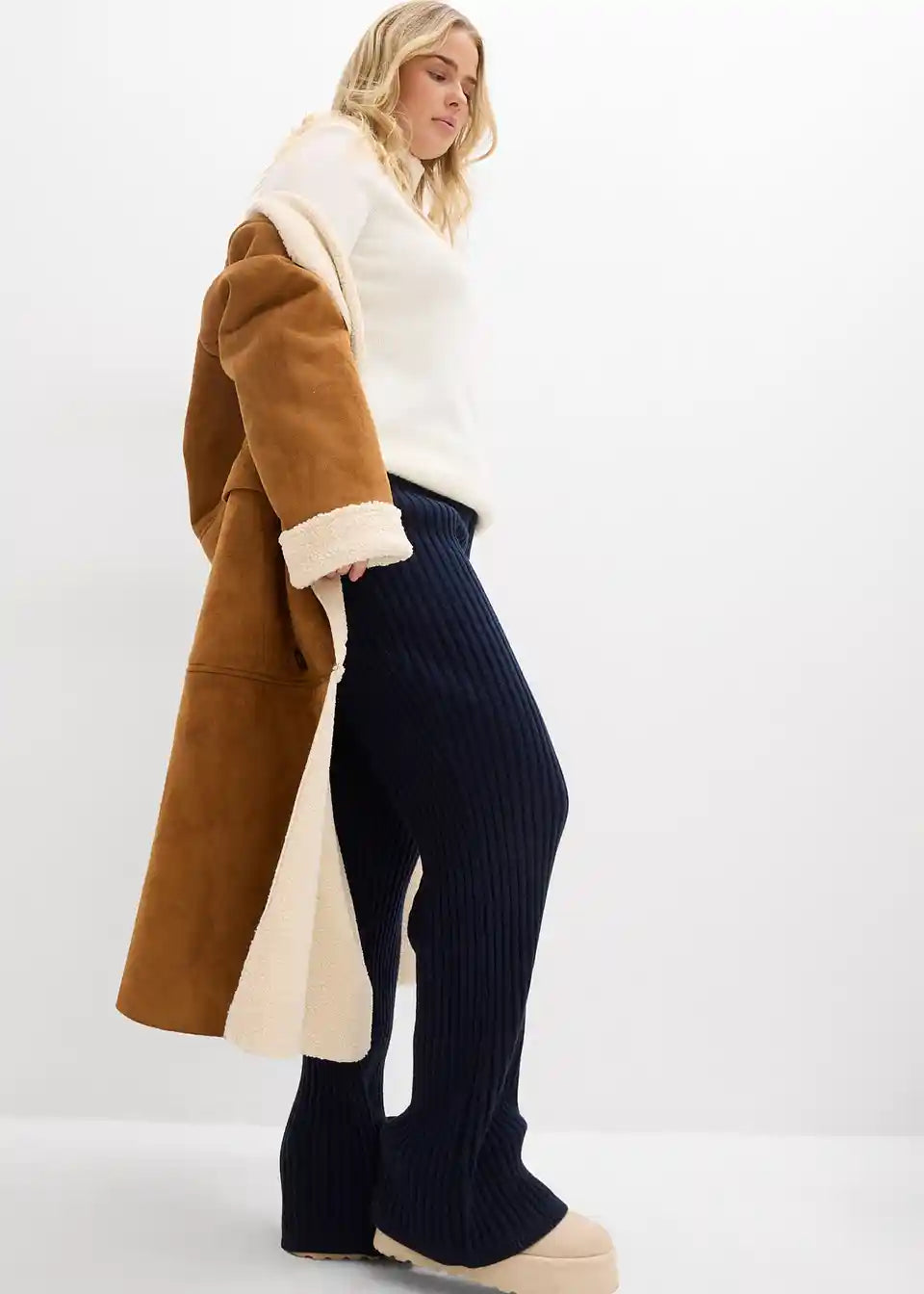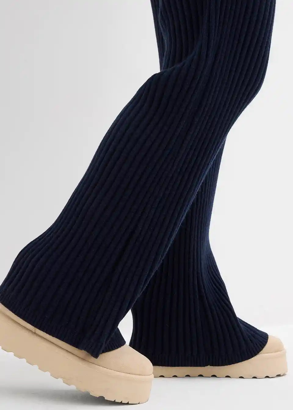 Visokostrukirane hlače s uskim rebrastim pojasom i skrivenom gumom.