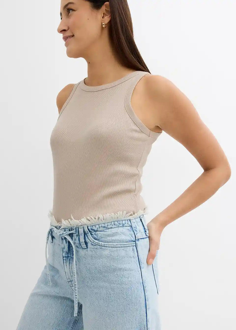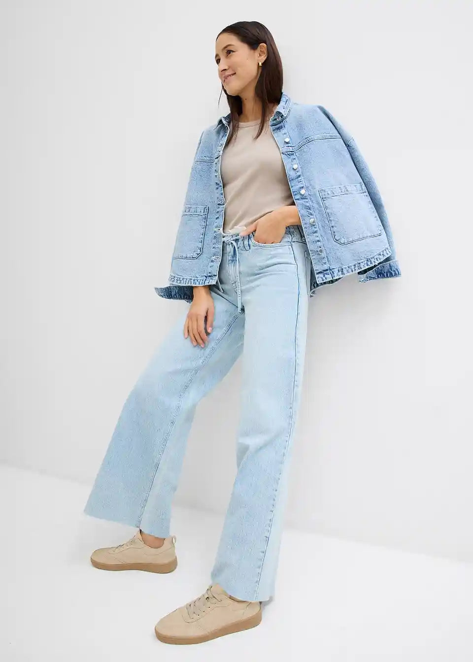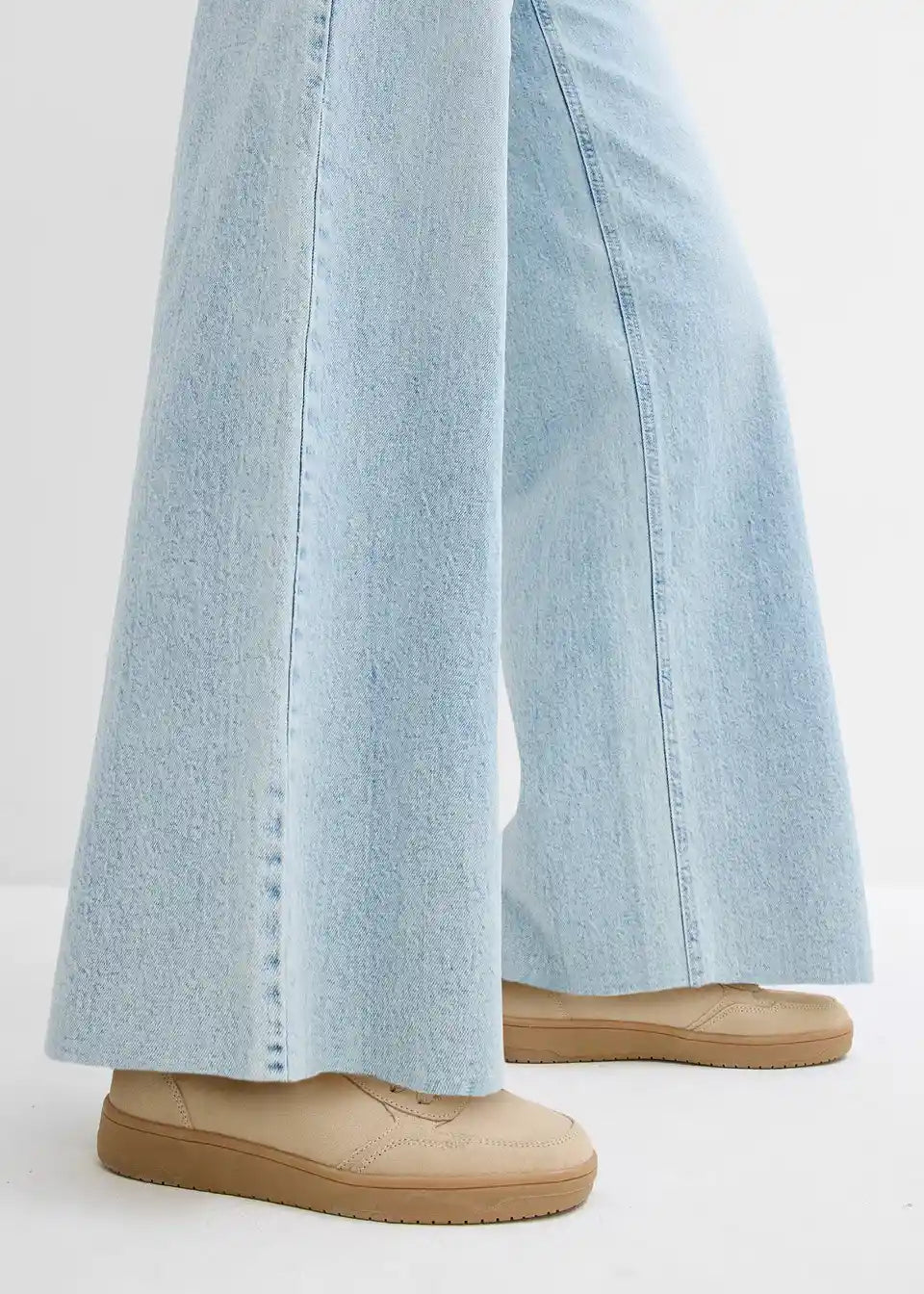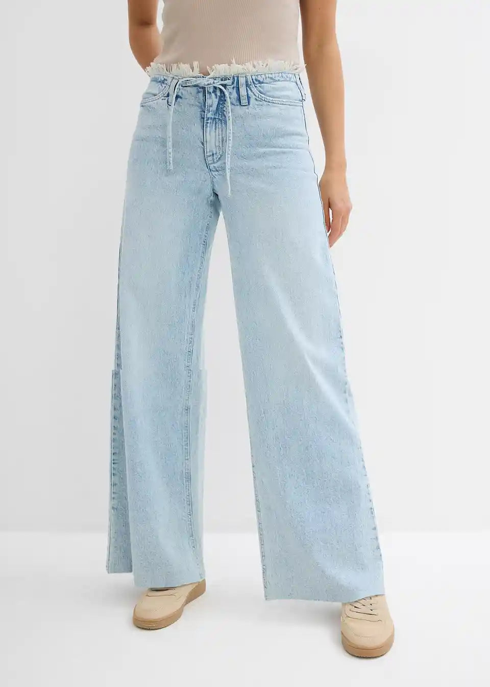 Traperice sa širokim nogavicama i srednje visokim strukom od stretcha s malim udjelom elastana i resastim rubom