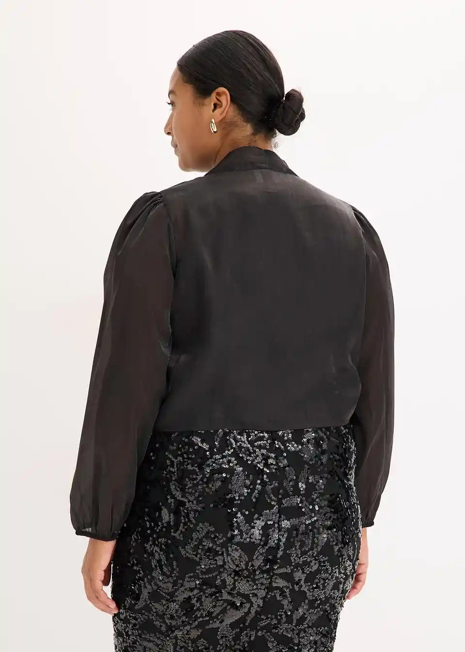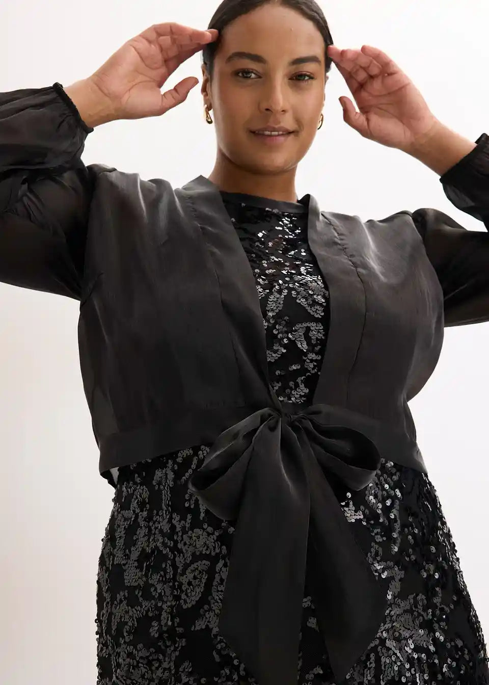 Moderno i ženstveno: Bolero od sjajnog tila s vezicom i balon rukavima