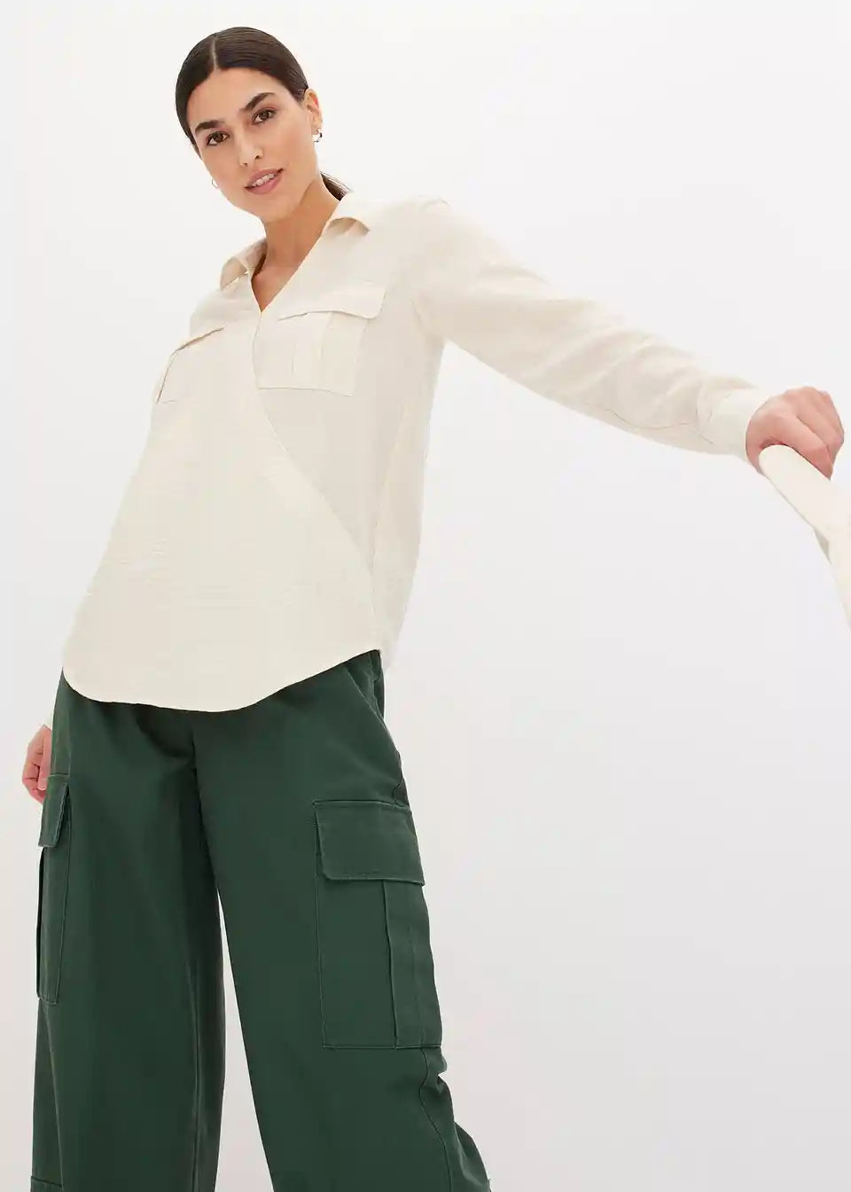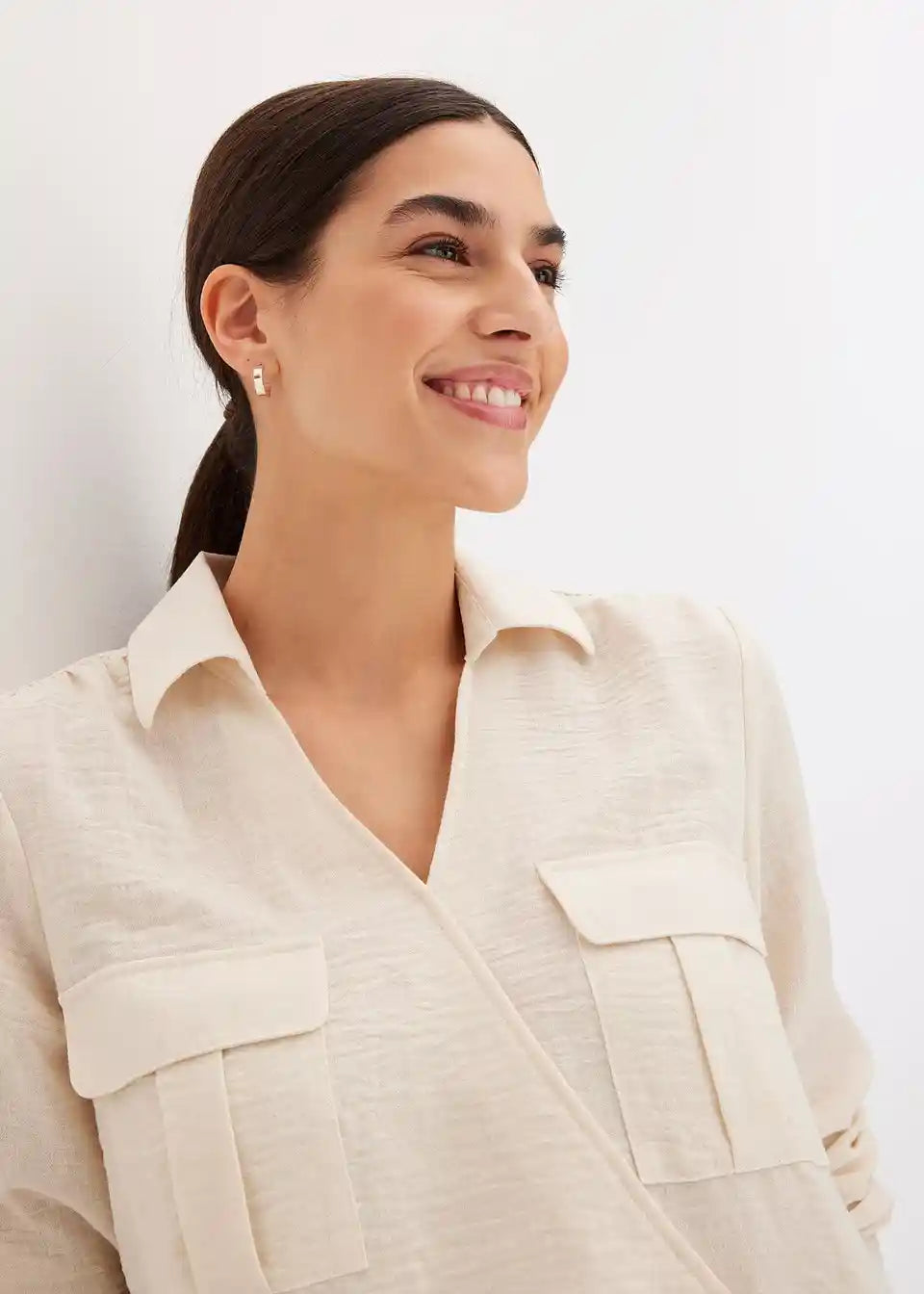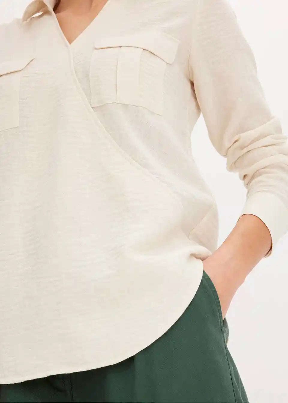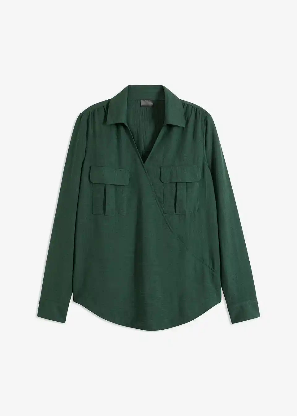 Šarmantna bluza u stilu omota s našivenim džepovima