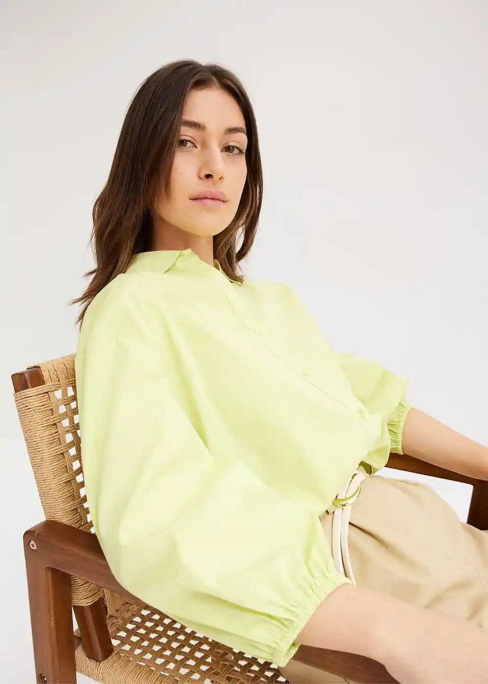 Voluminozna bluza s dužim stražnjim dijelom, spuštenim ramenima i balon rukavima