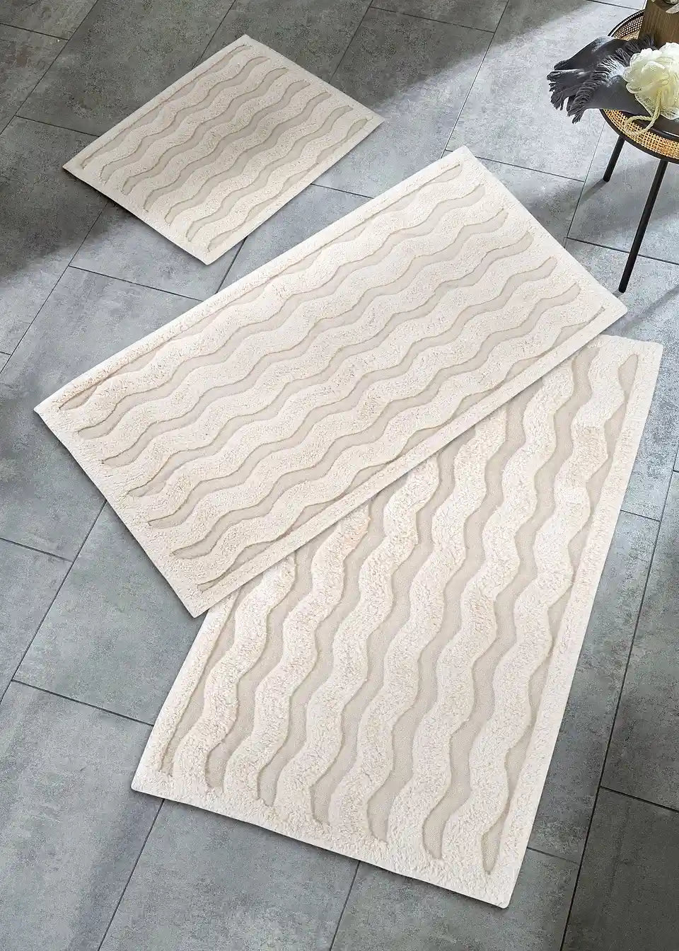 Tuftani tepih za kupaonicu, periv na 30°C, protuklizna stražnja strana, pogodan za podno grijanje.