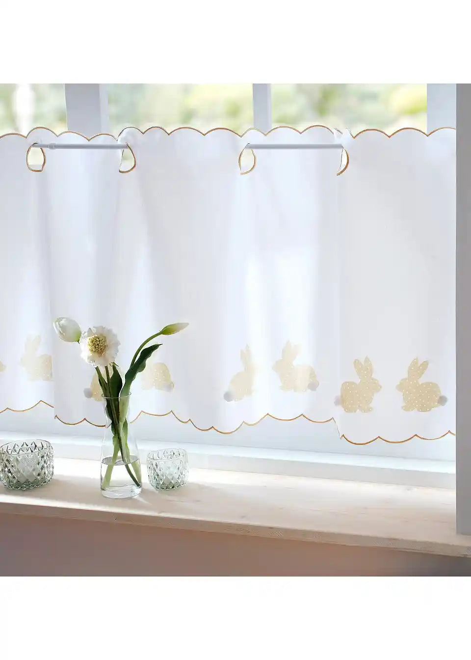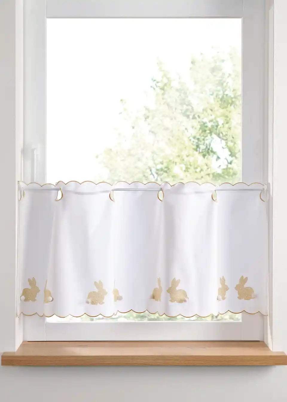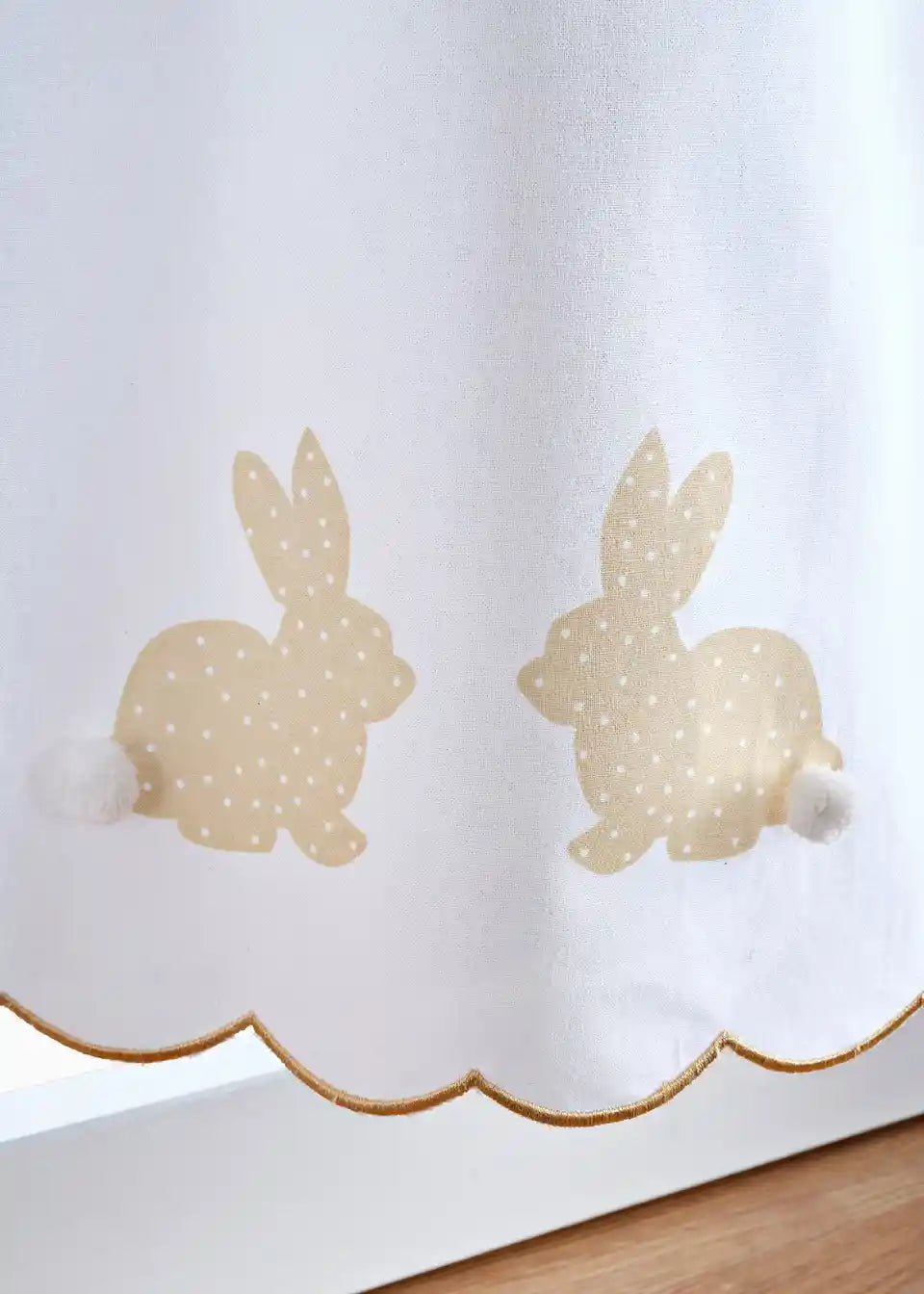 Prekrasan mali prozor s preslatkim tiskanim uskrsnim zečevima koji imaju dodatni pompon. Suptilna, a ipak jedinstvena dekoracija prozora za Uskrs!