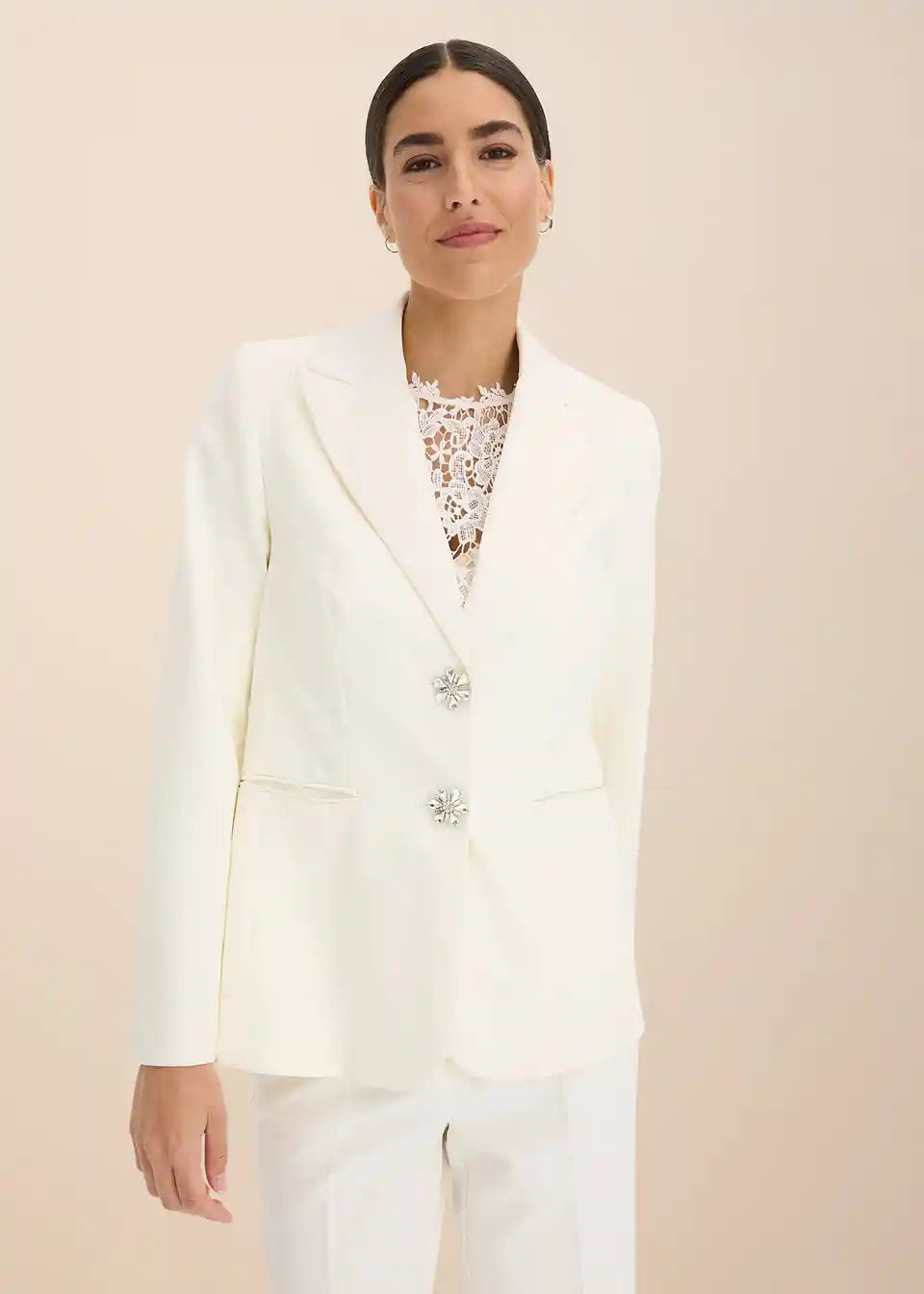 Moderan i ženstven: Blazer sa satenskim ovratnikom i ukrasnim gumbima