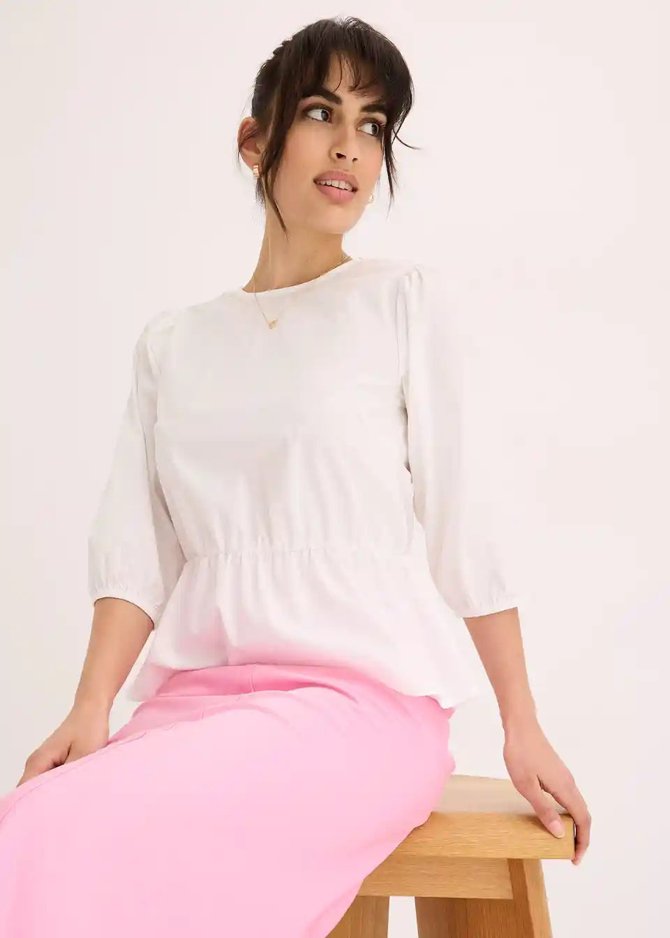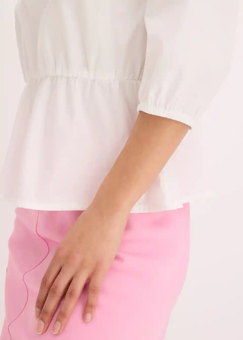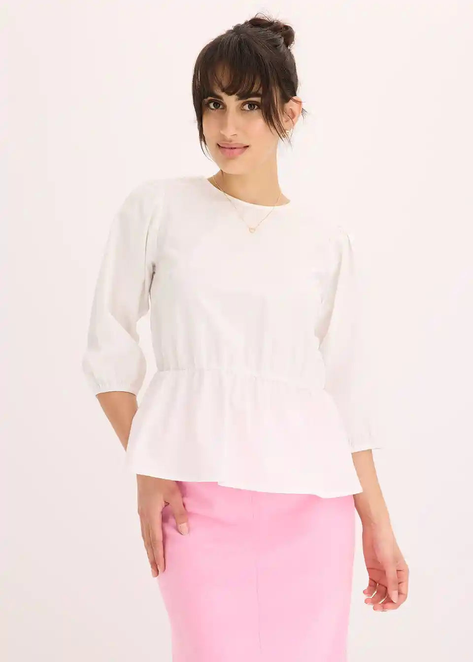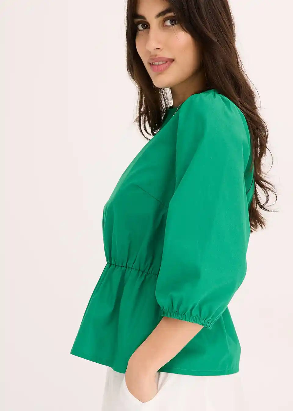 Bluza s okruglim izrezom, elastičnim pojasom u struku i 3/4 rukavima