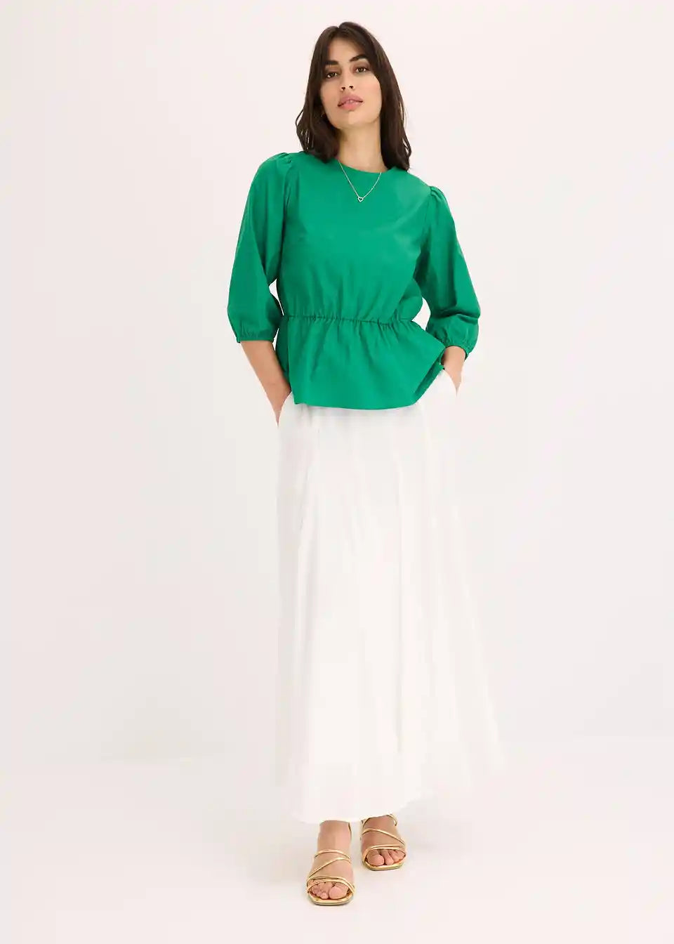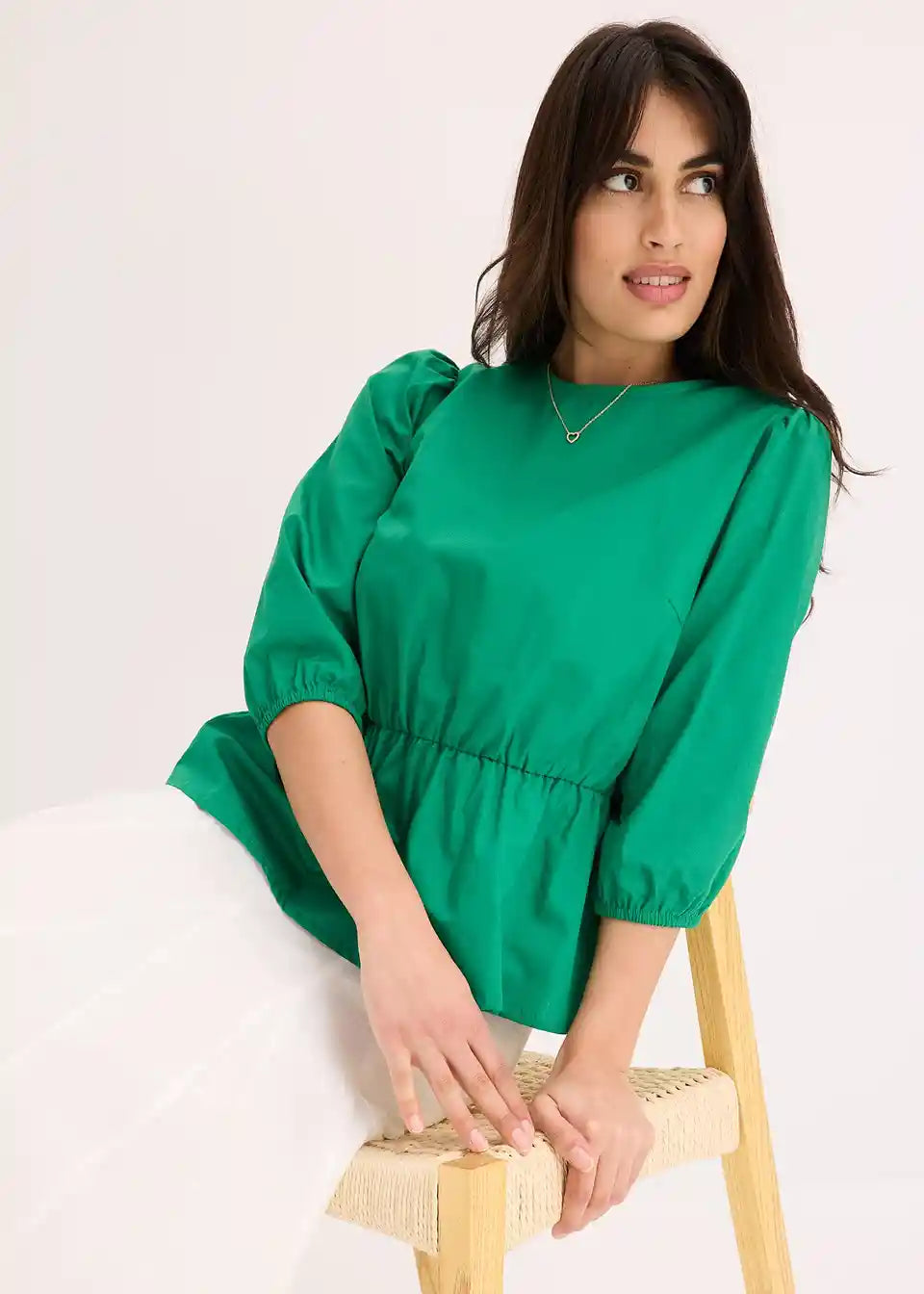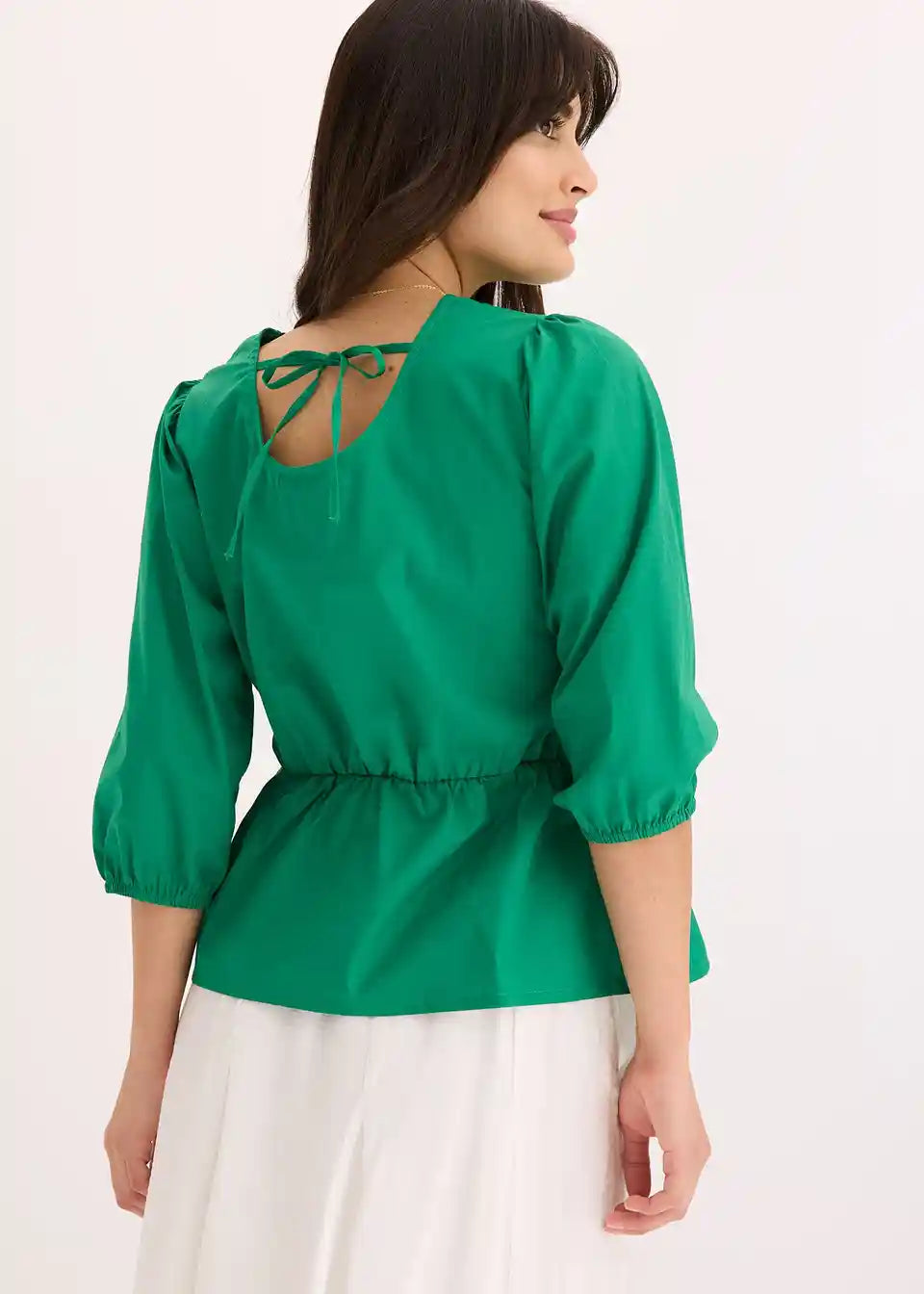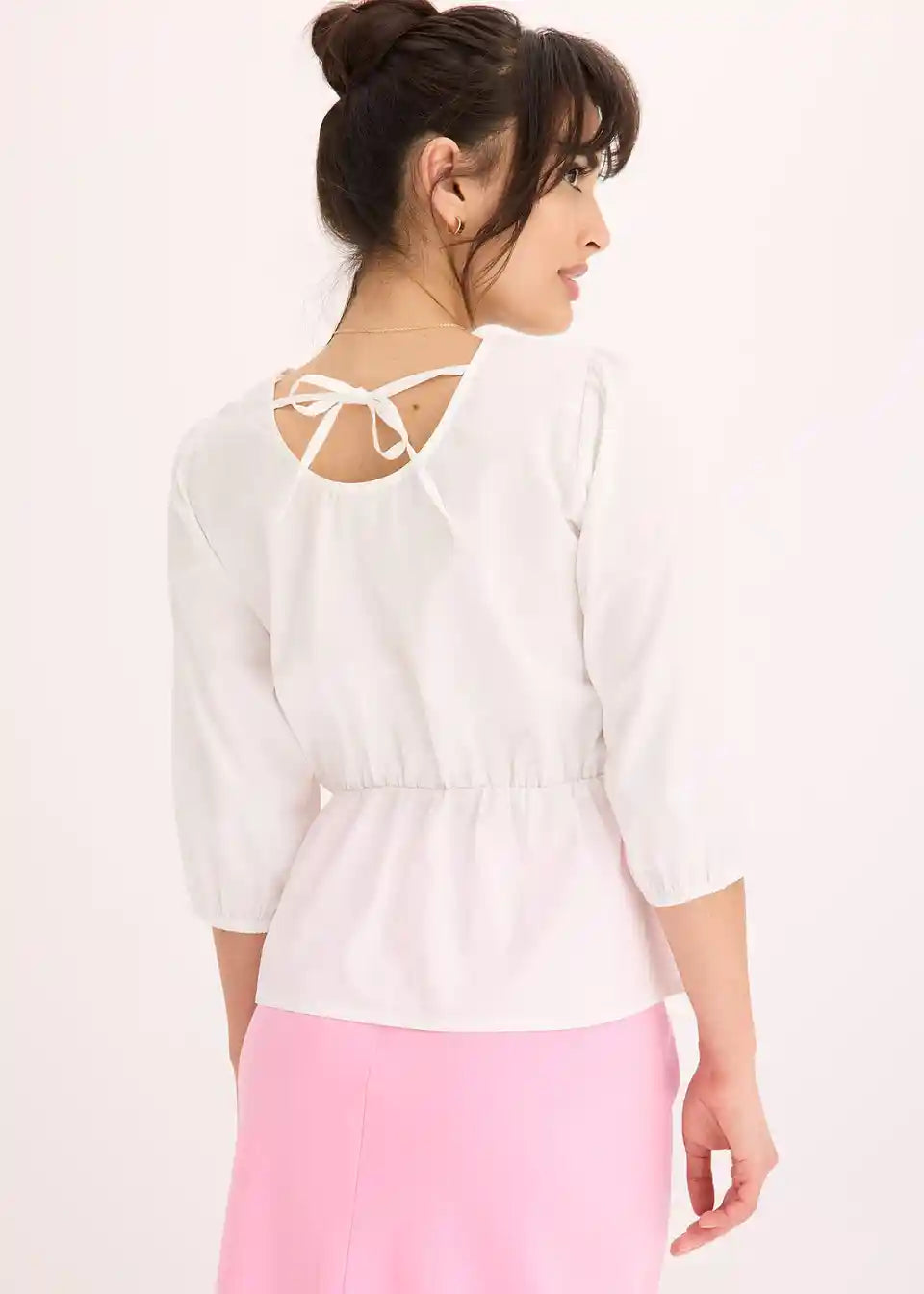 Bluza s okruglim izrezom, elastičnim pojasom u struku i 3/4 rukavima