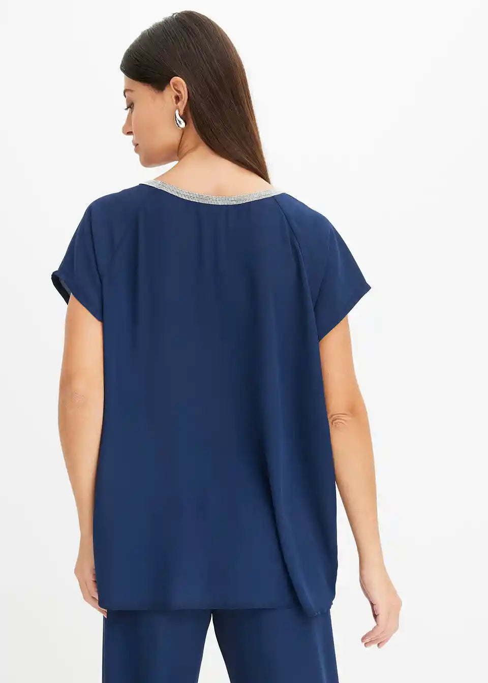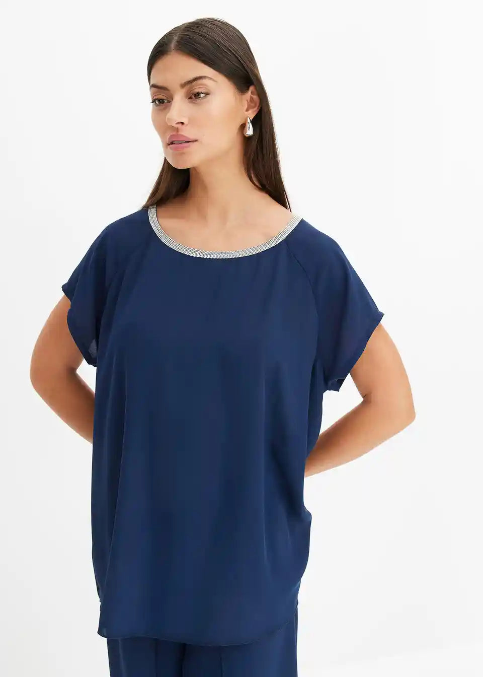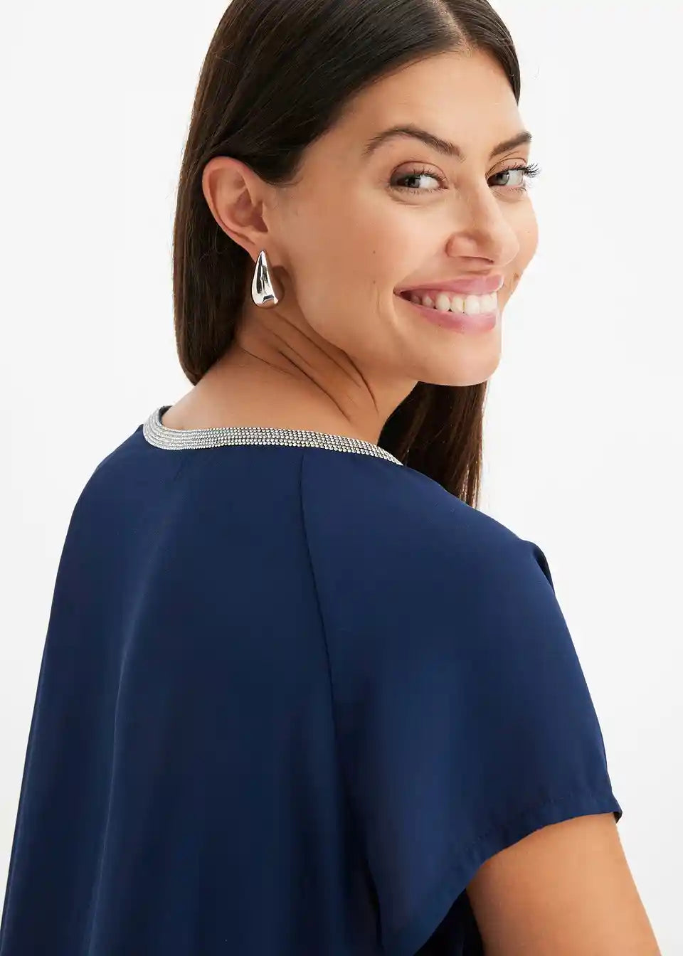 Oversized bluza od finog georgettea s ukrasnim kamenčićima na izrezu