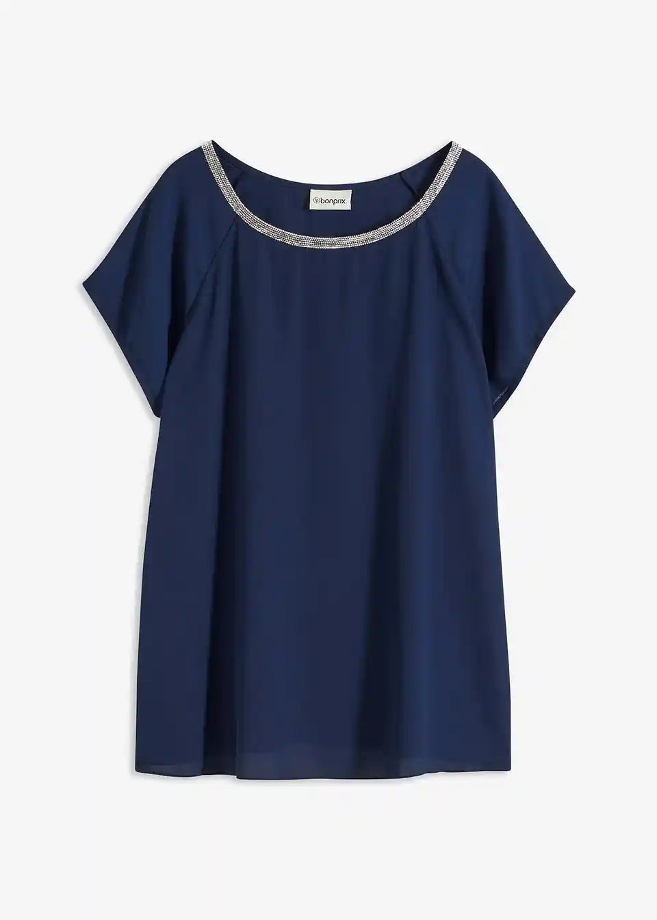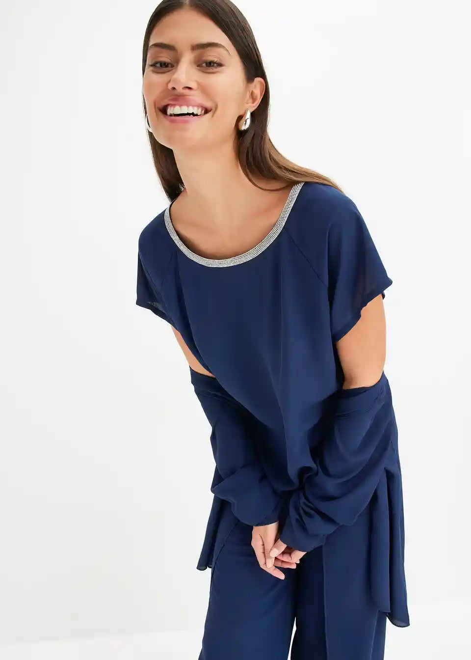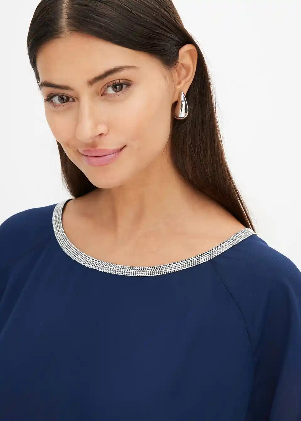 Oversized bluza od finog georgettea s ukrasnim kamenčićima na izrezu
