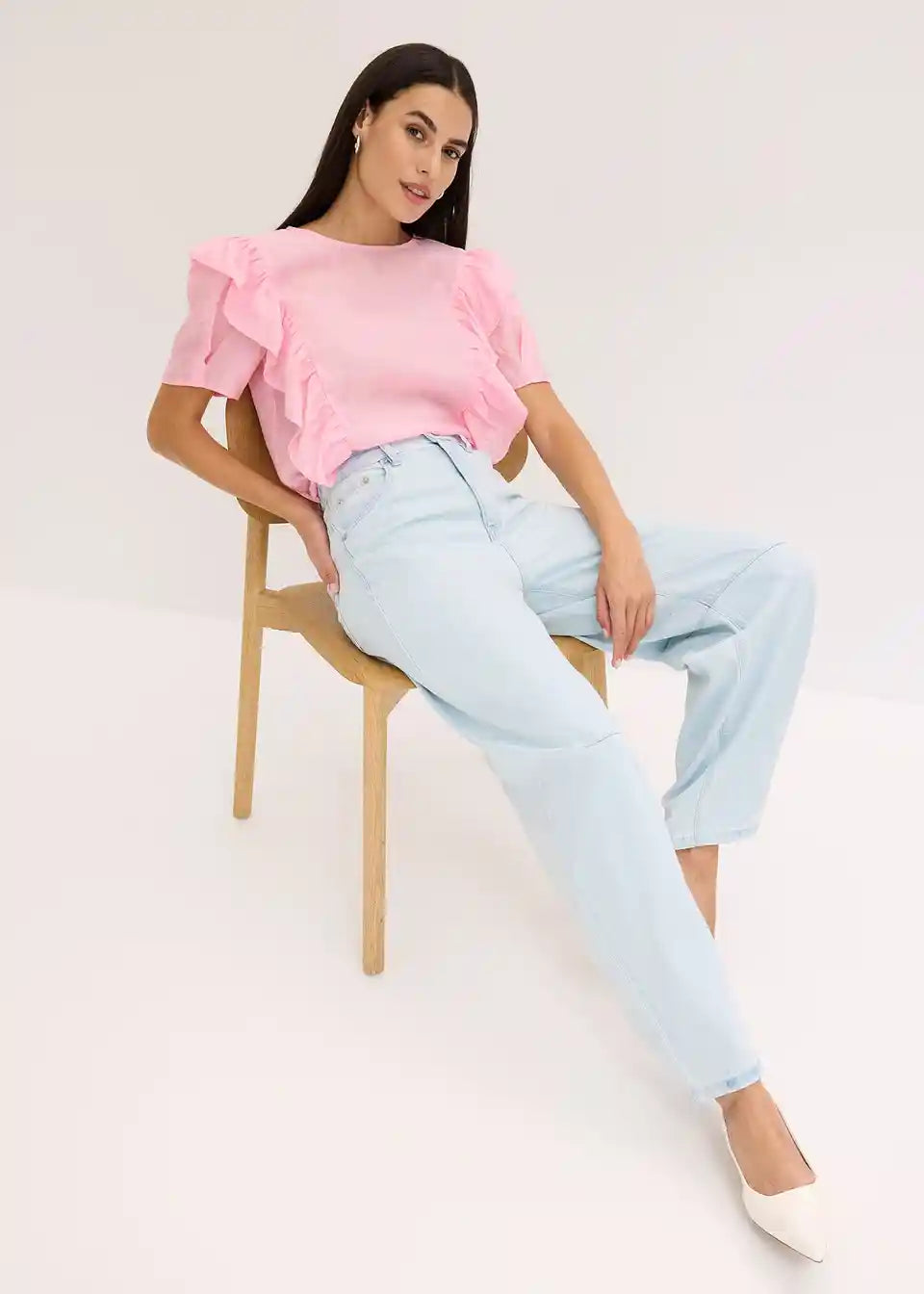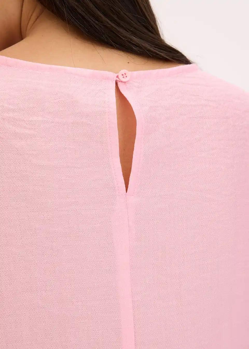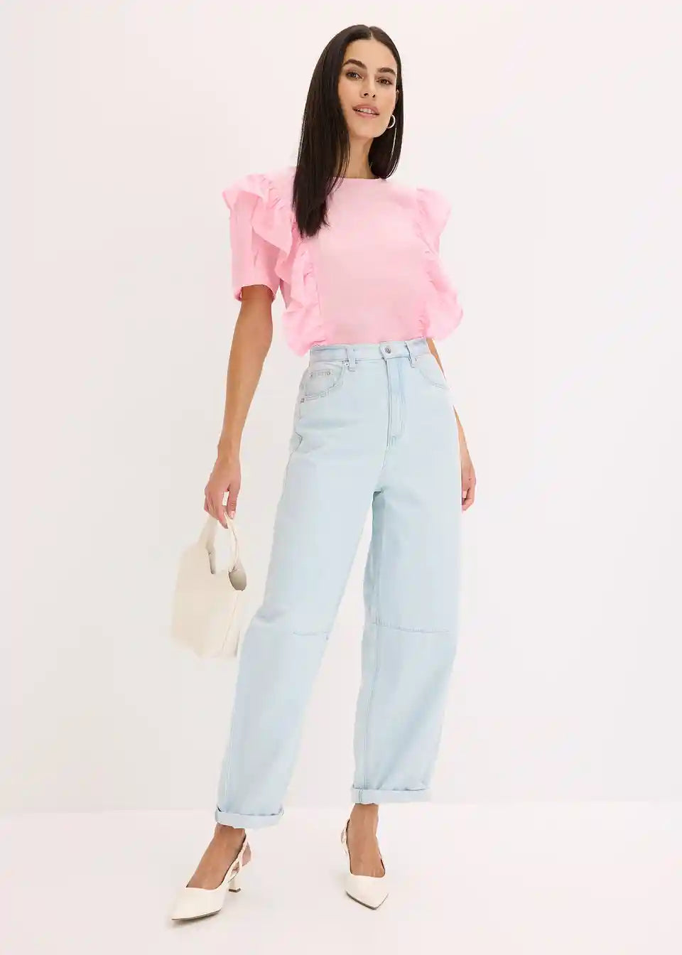 moderna bluza s volanima sprijeda i kopčanjem na gumb straga na izrezu