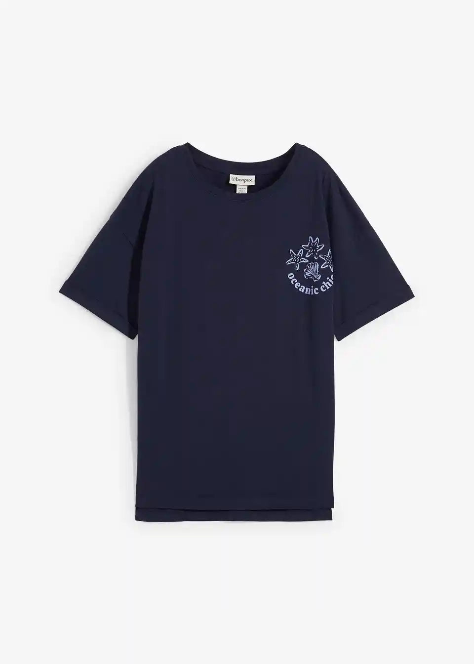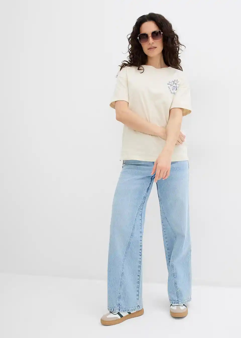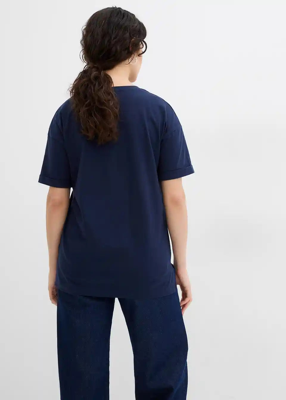 Široko krojena majica s bočnim prorezima i produženim stražnjim rubom
