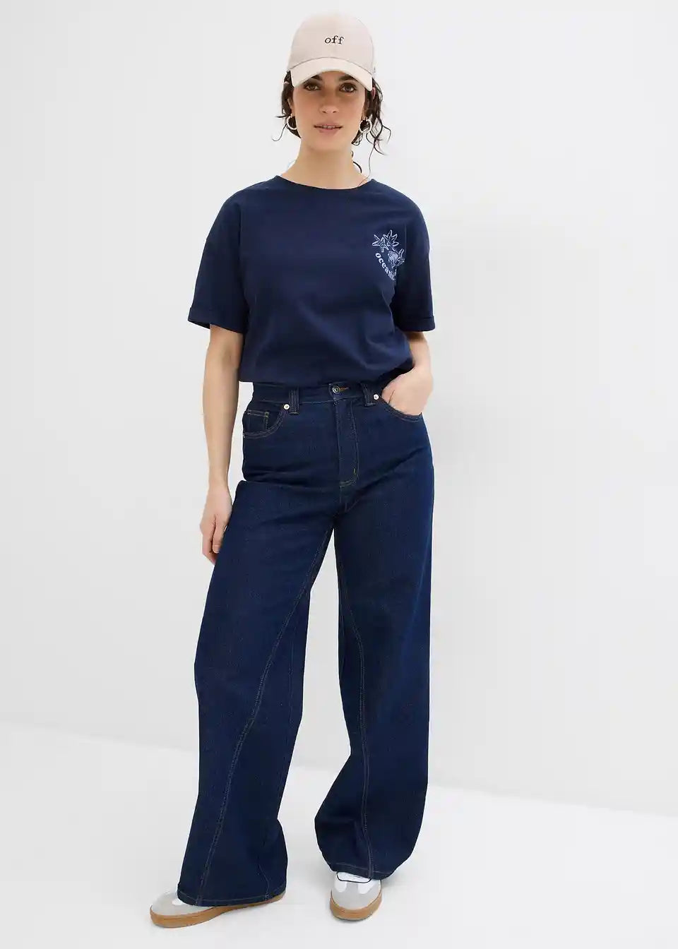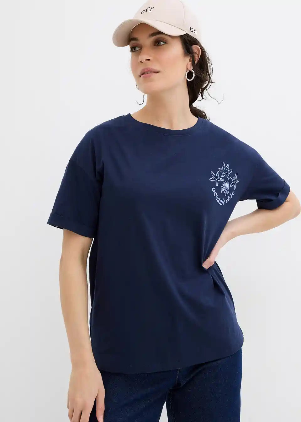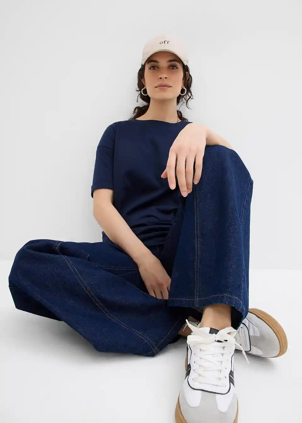 Široko krojena majica s bočnim prorezima i produženim stražnjim rubom
