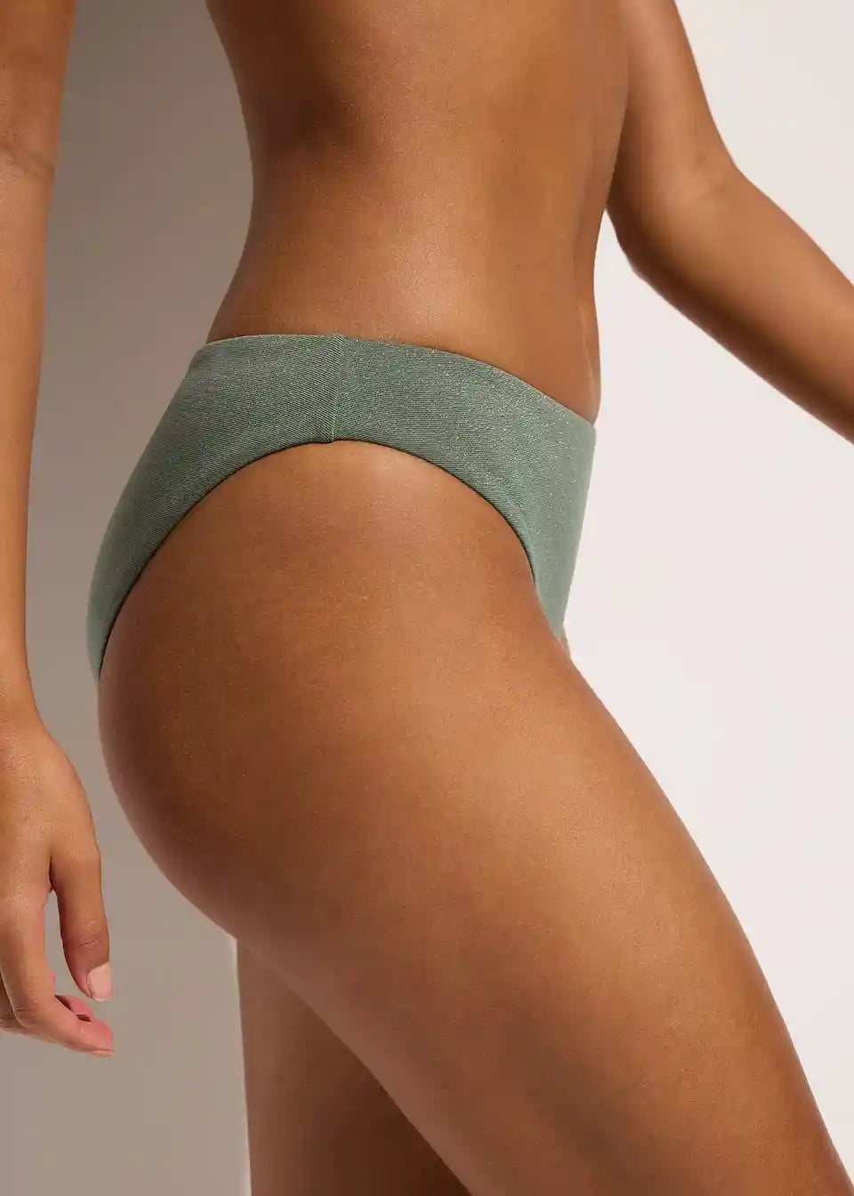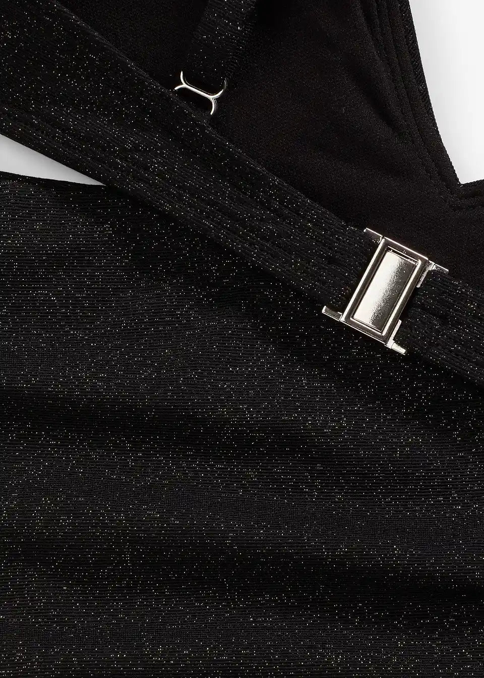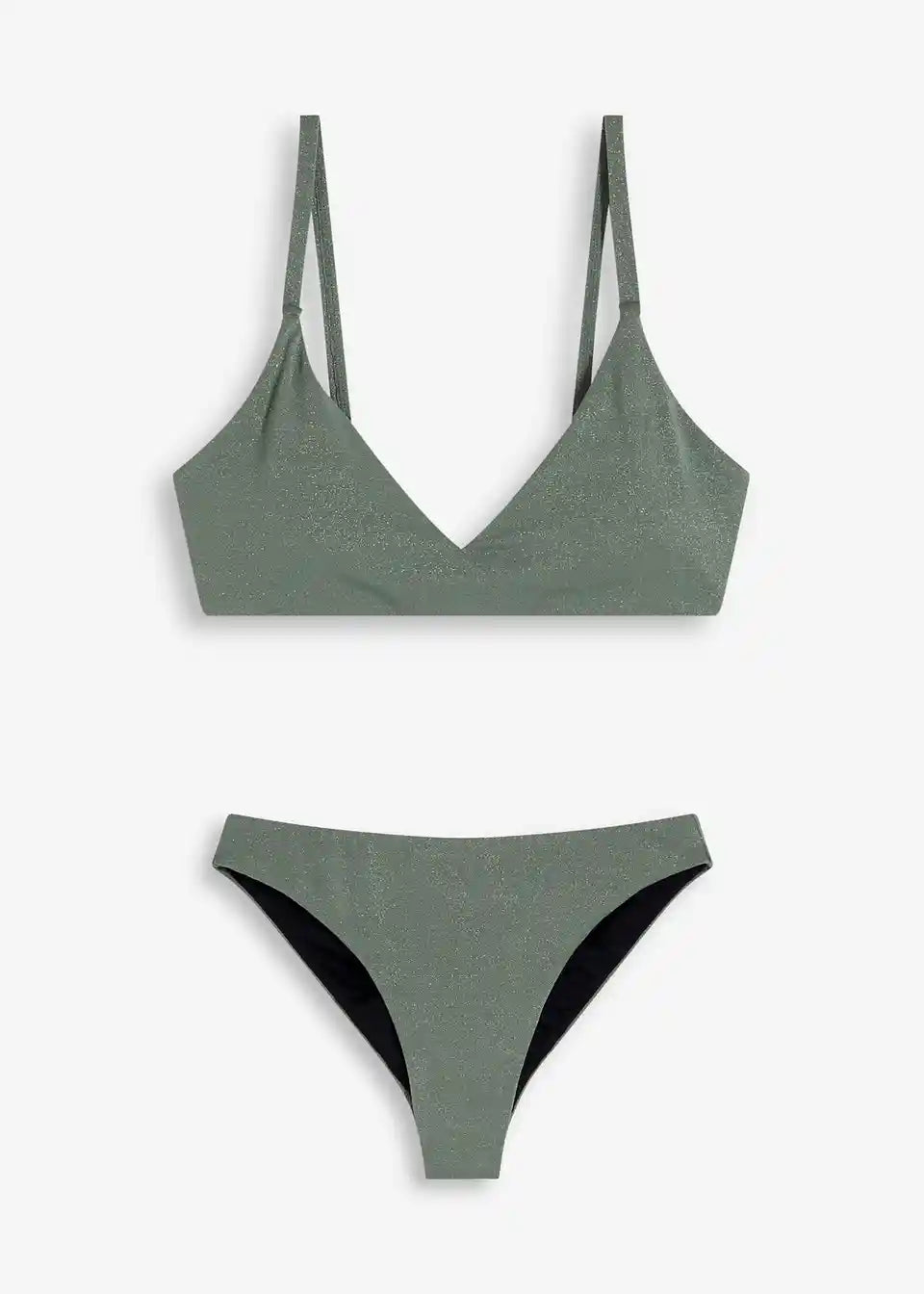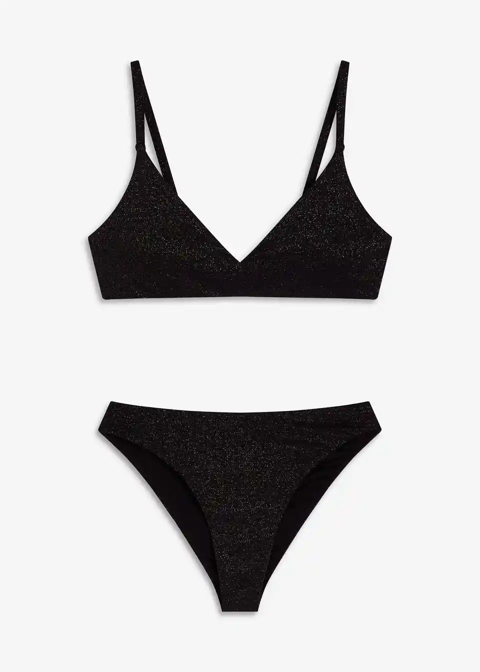 Dvodijelni bikini kupaći kostim s bralette grudnjakom i jednom naramenicom sa sjajnim vlaknima