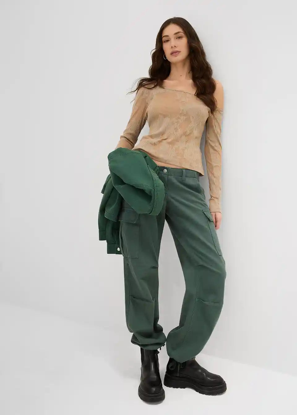 Ležerne Cargo hlače u Relaxed Fit kroju s tunelskim pojasom na rubu
