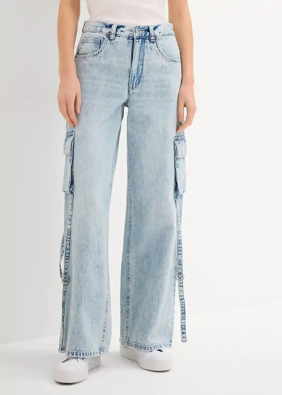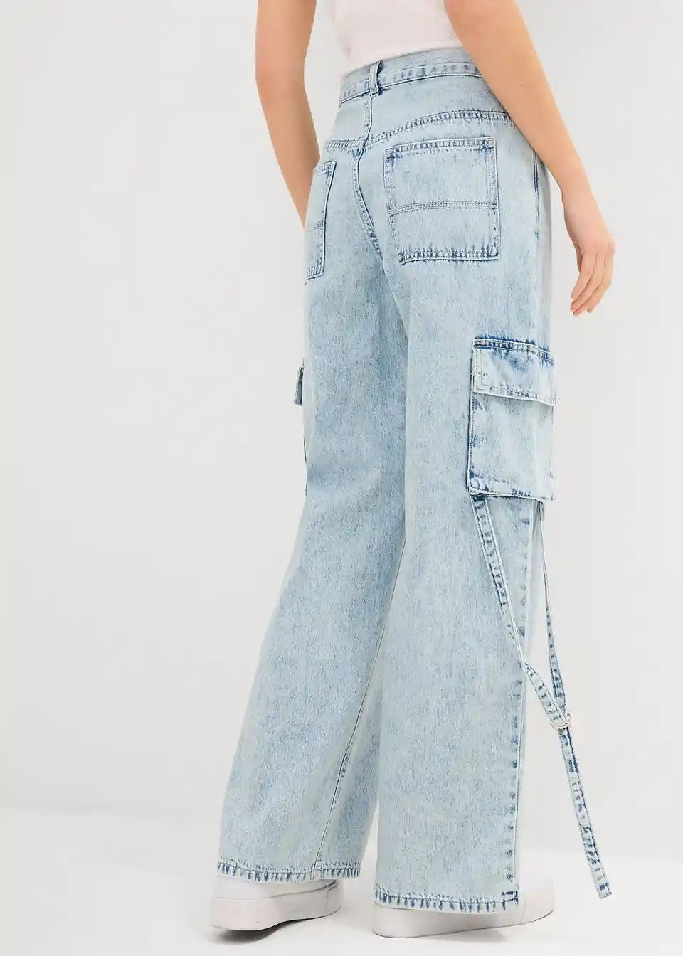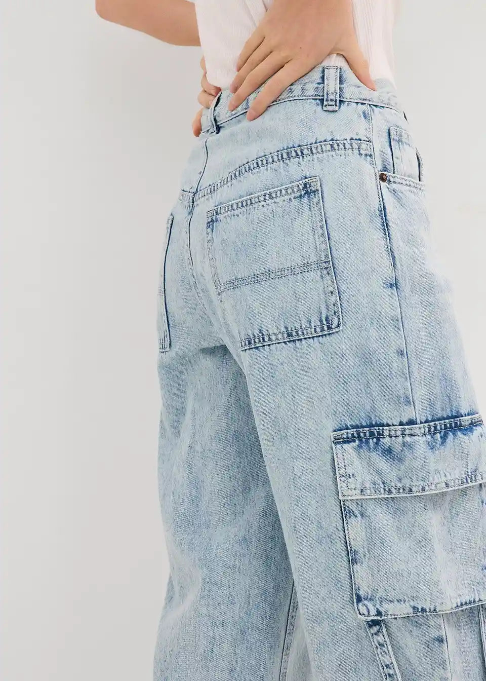 Wide-Leg Jeans Mid Waist s Cargo detaljima