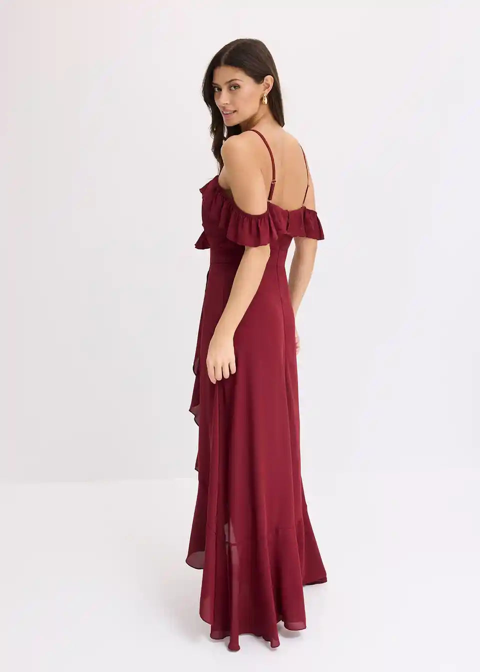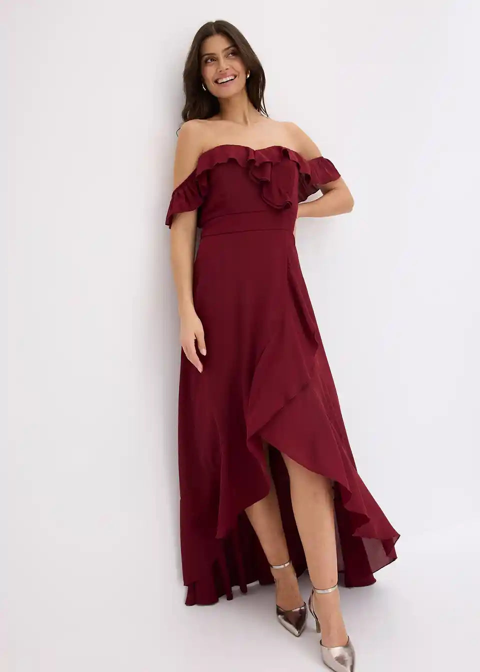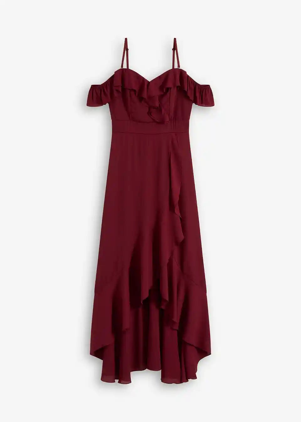 Moderno i ženstveno: večernja haljina s podesivim naramenicama, Carmen-izrezom i volanima