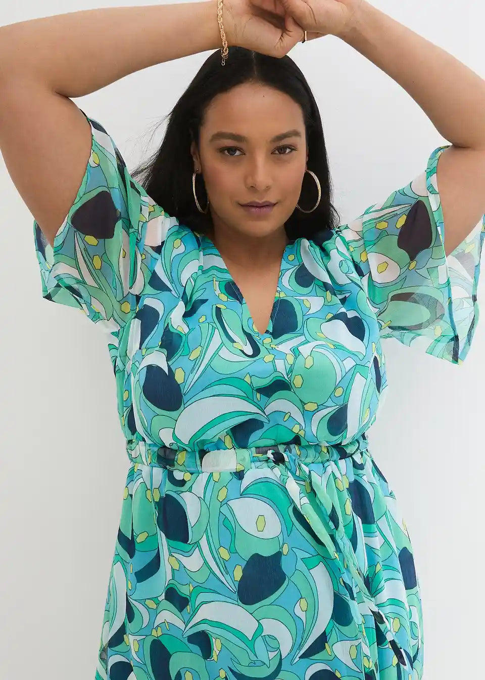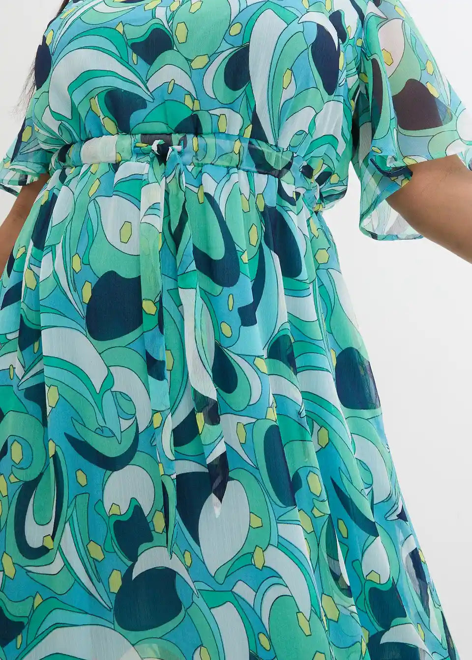 Chiffon haljina s lepršavim rukavima i vezanim pojasom