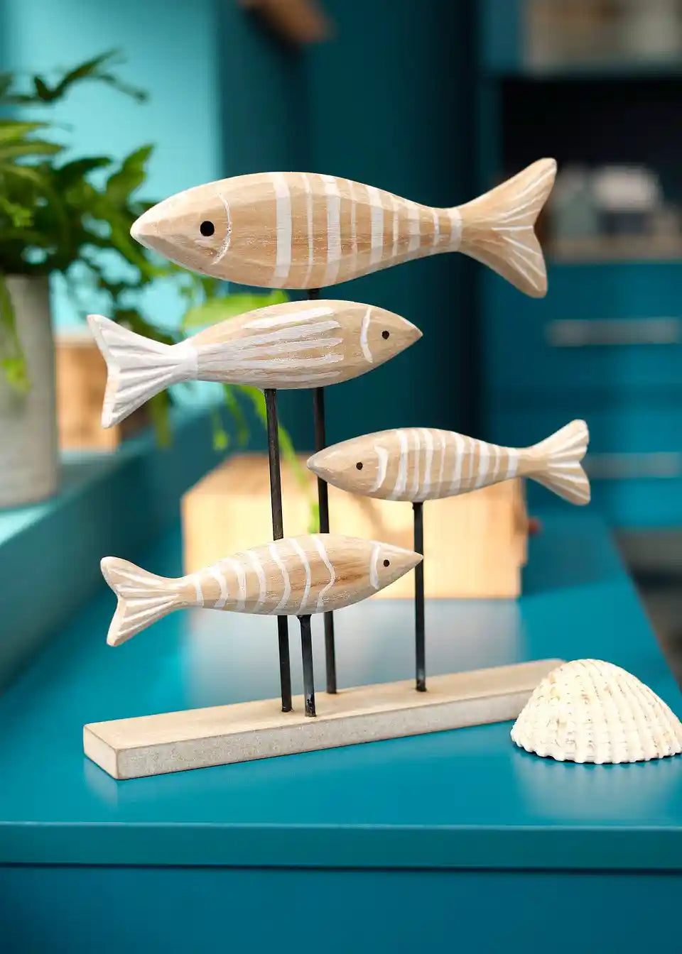 Originalan ukras za kupaonicu i dnevni boravak. 4 ribe raspoređene na različitim visinama. Ovaj prekrasan dekorativni element privući će sve poglede.