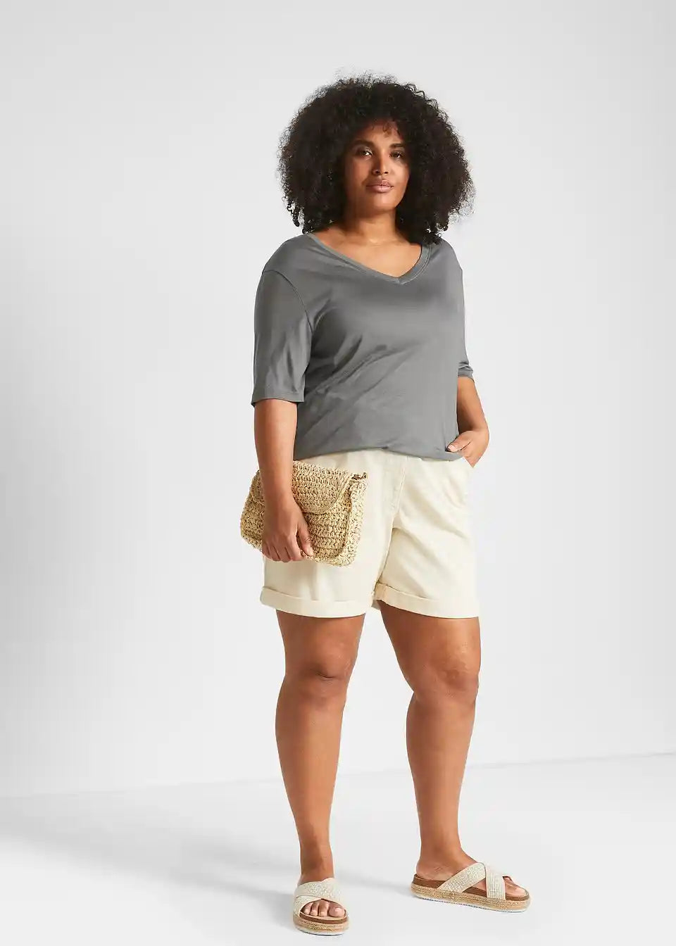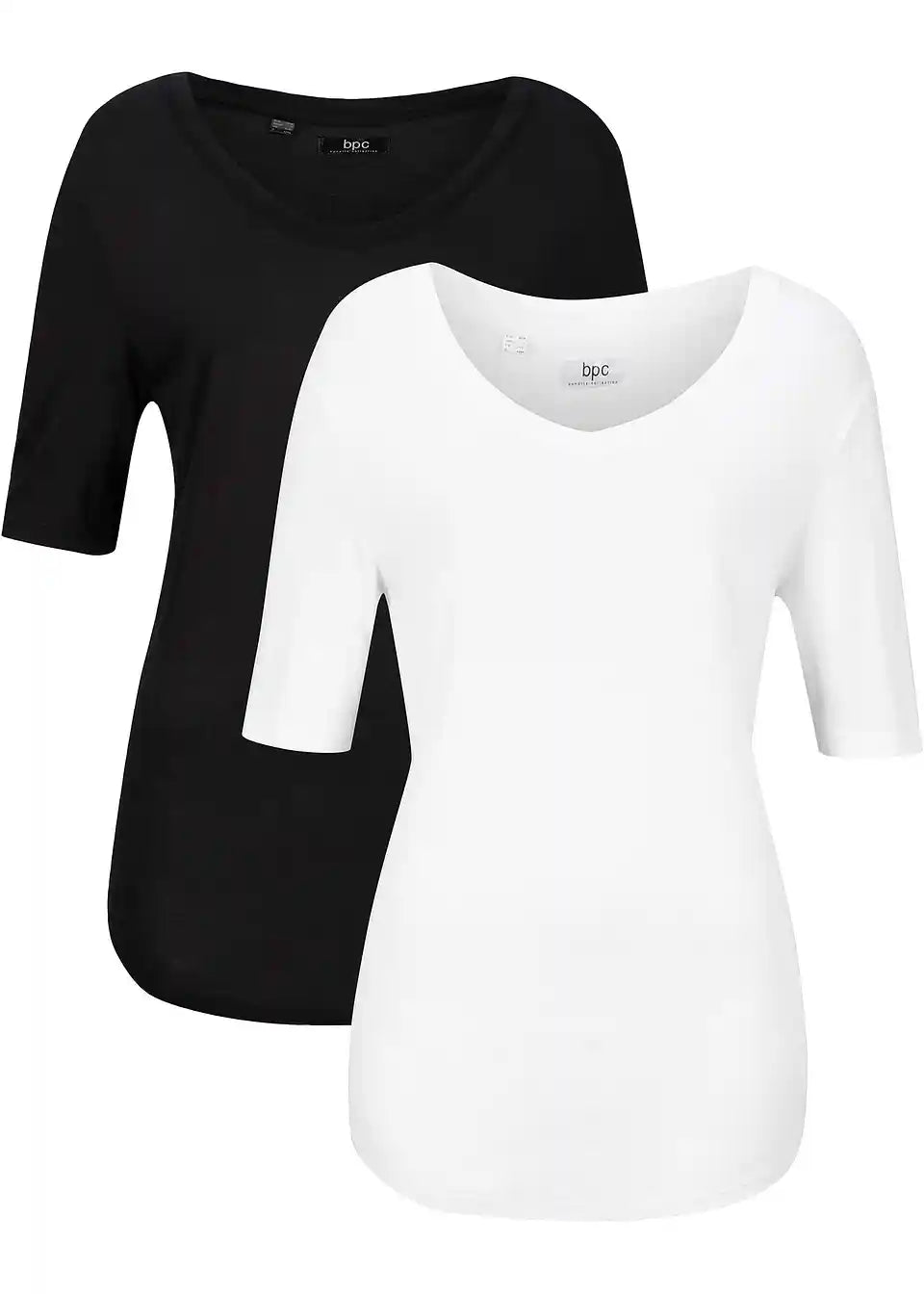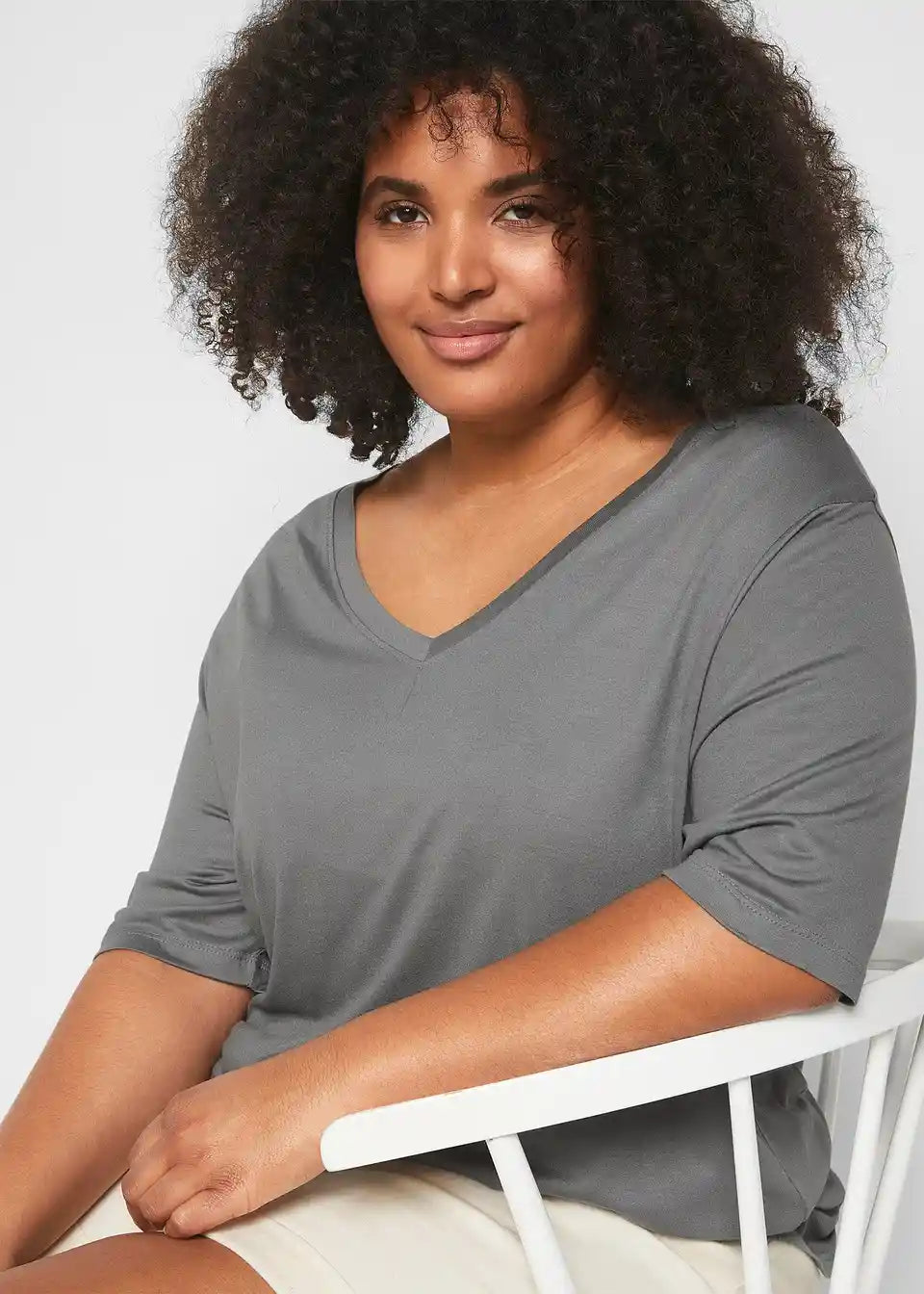 Majica s V-izrezom, jednostavna za kombiniranje, izrađena od lepršave, održive viskoze, u praktičnom pakiranju od 2 kom