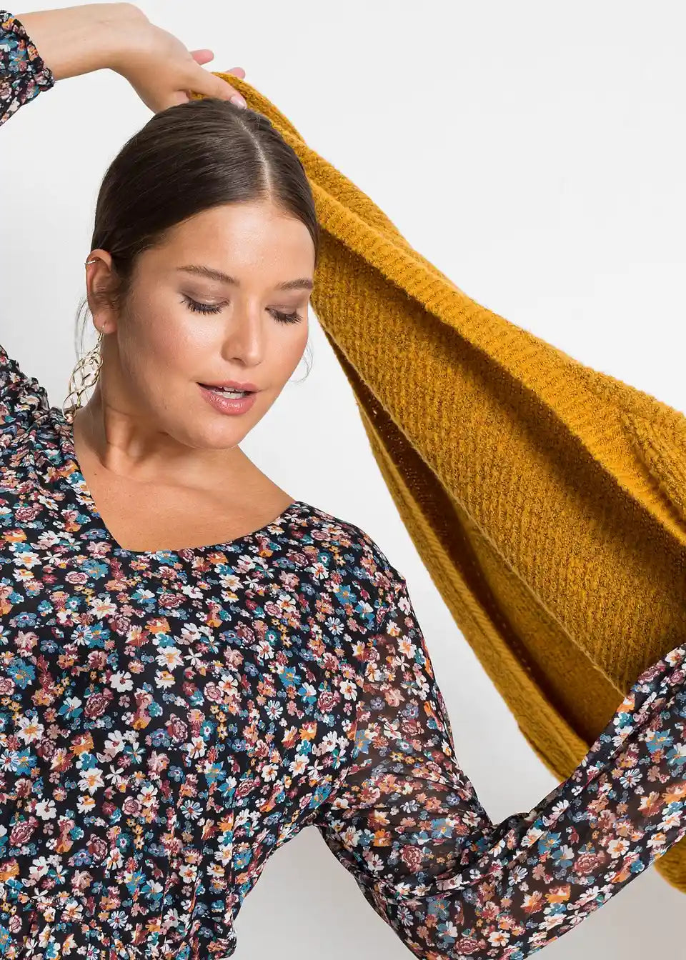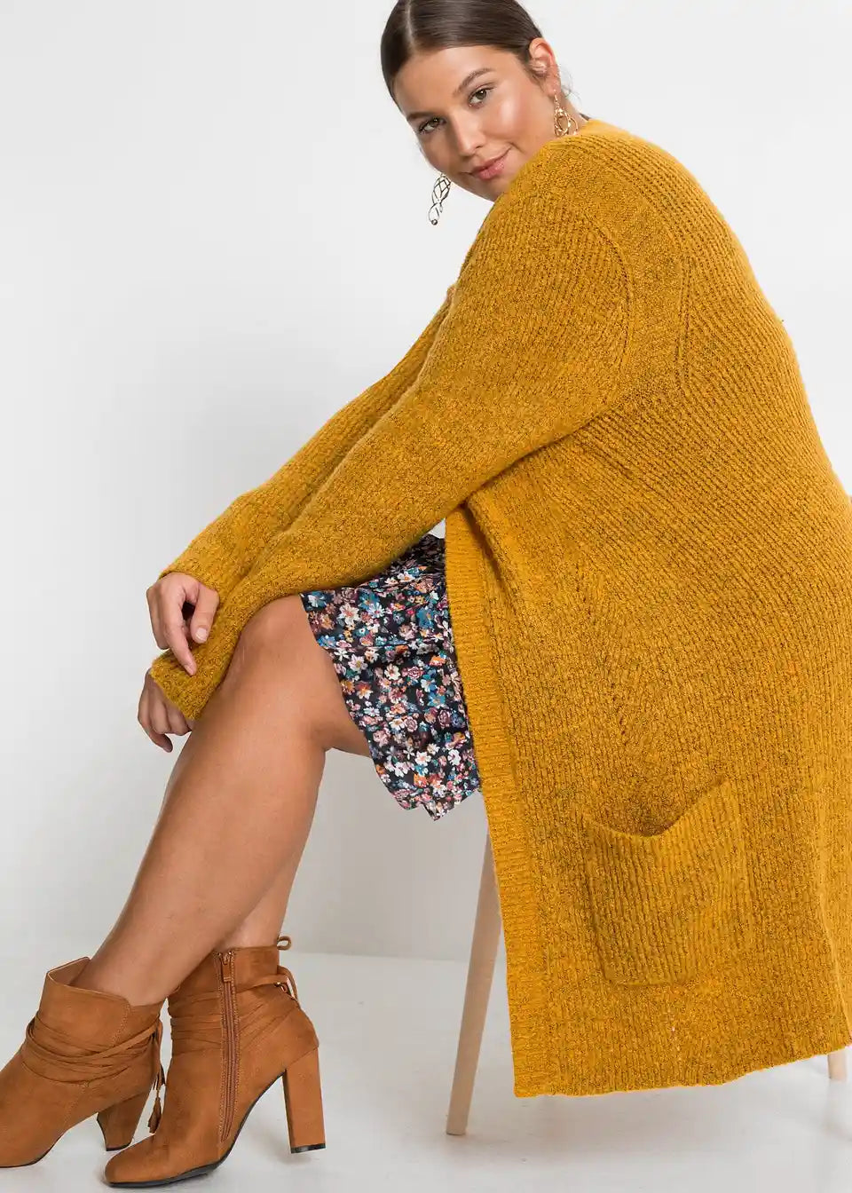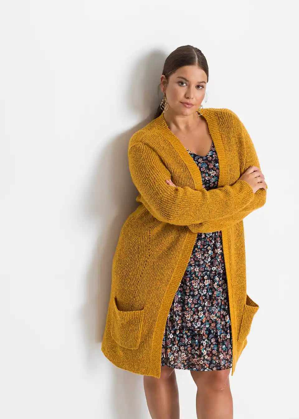 Modni dugi pleteni kardigan s našivenim džepovima.