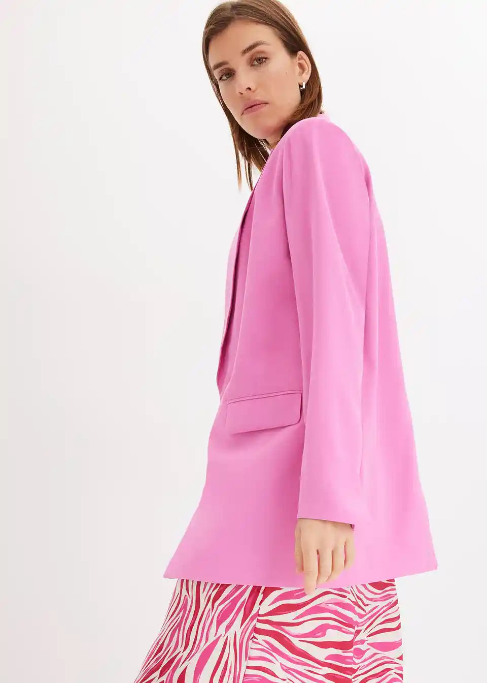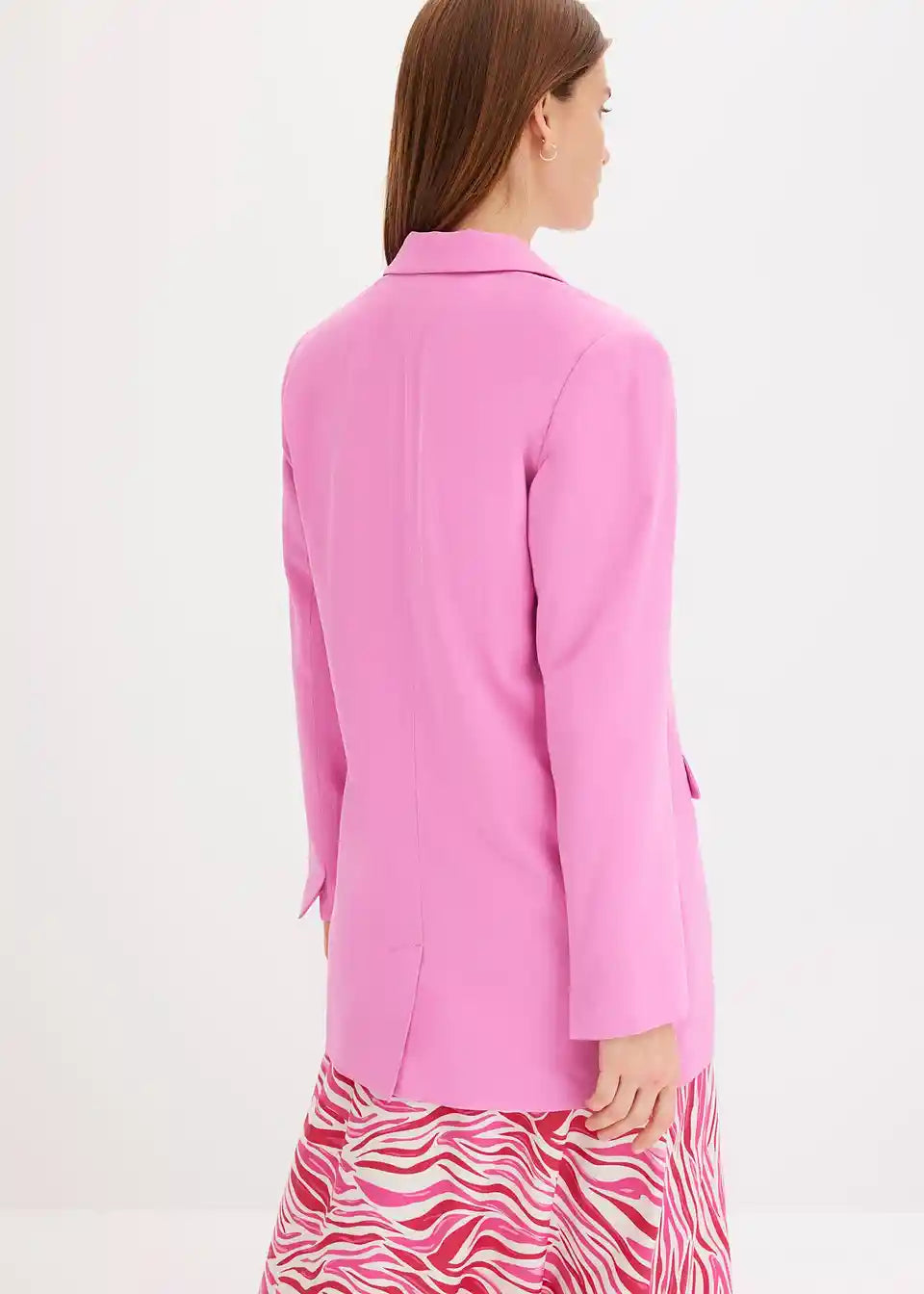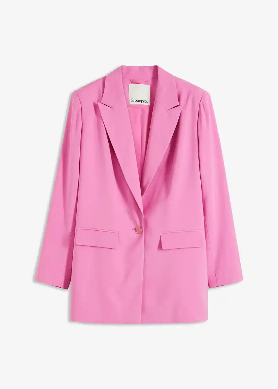 Moderan dugi sako s dekorativnim gumbom sprijeda za kopčanje.