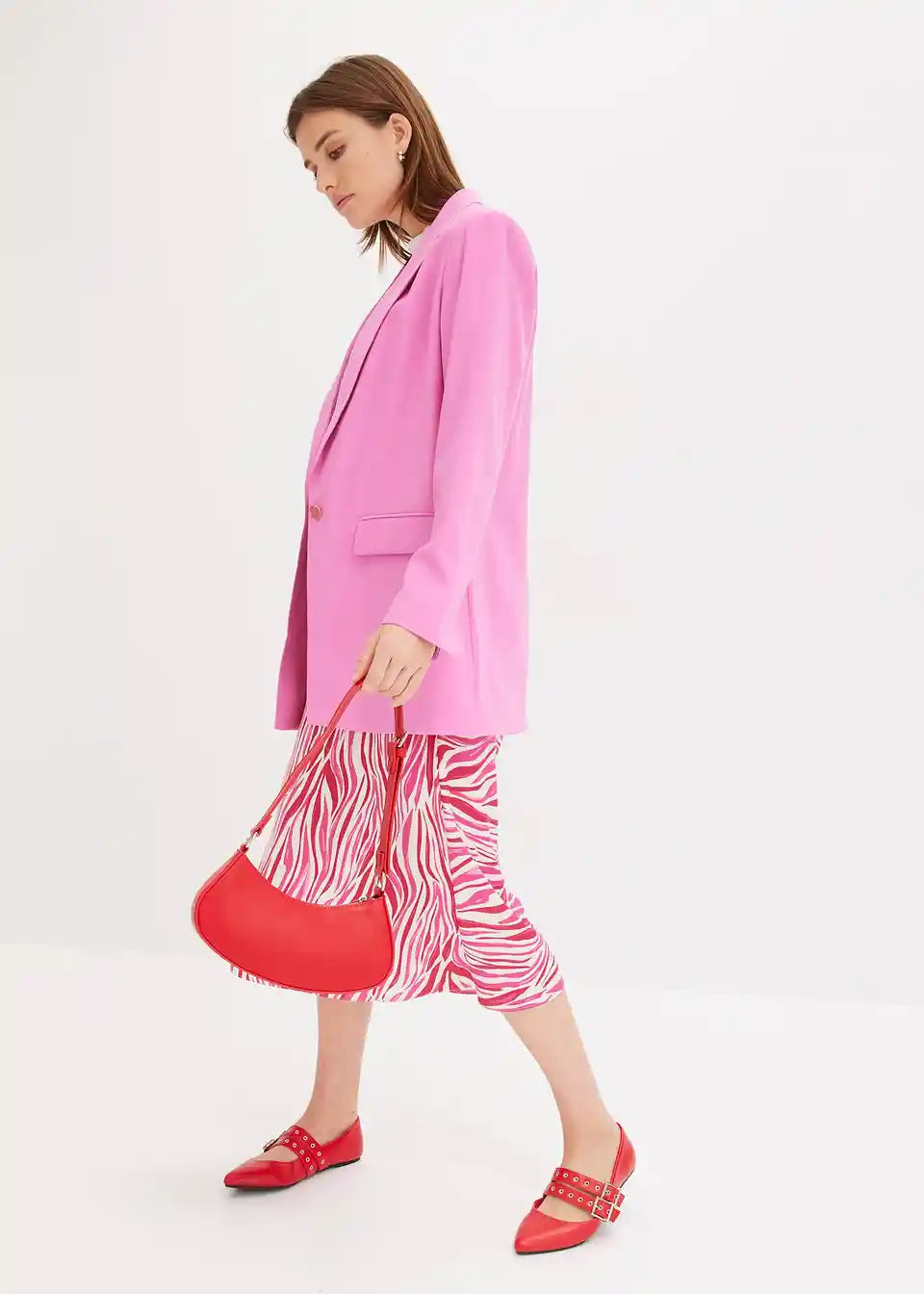 Značajka kroja:u dužini preko bokova, s V izrezom za vitak izgled, s kopčanjem sprijeda