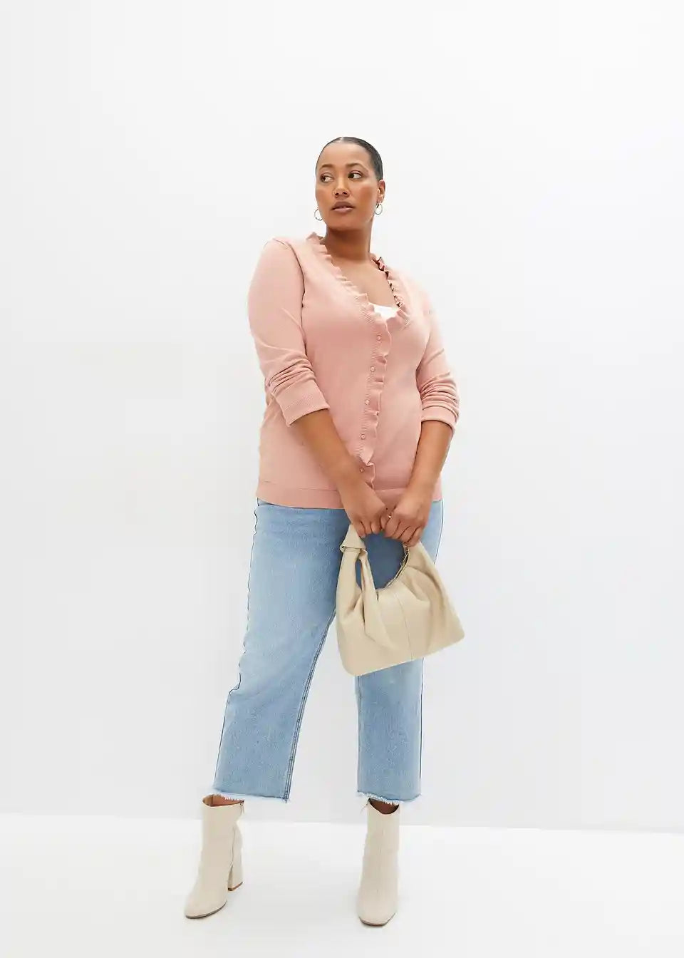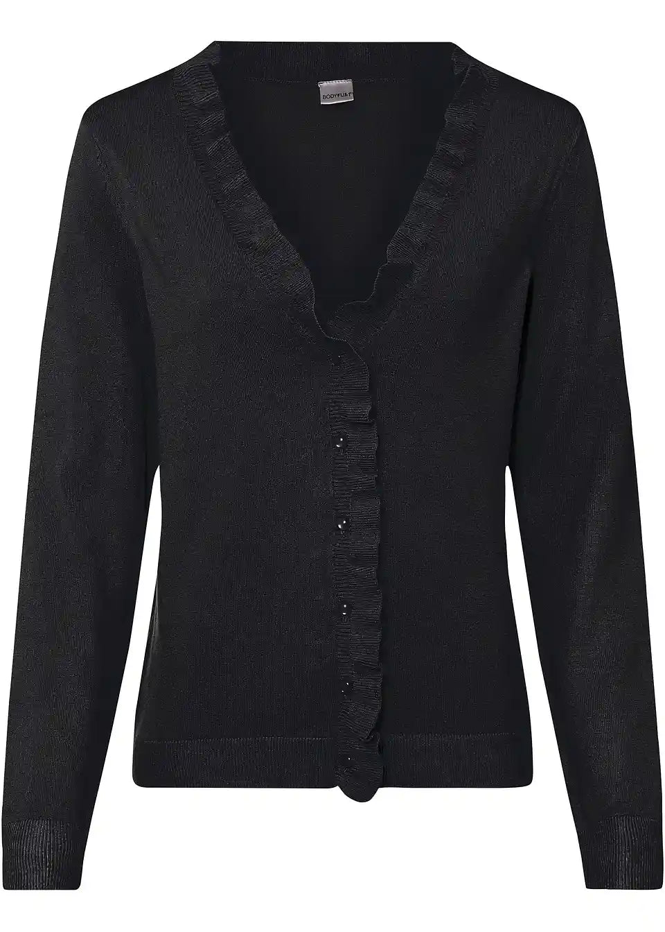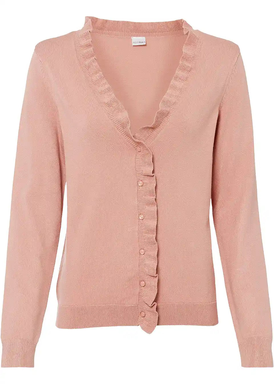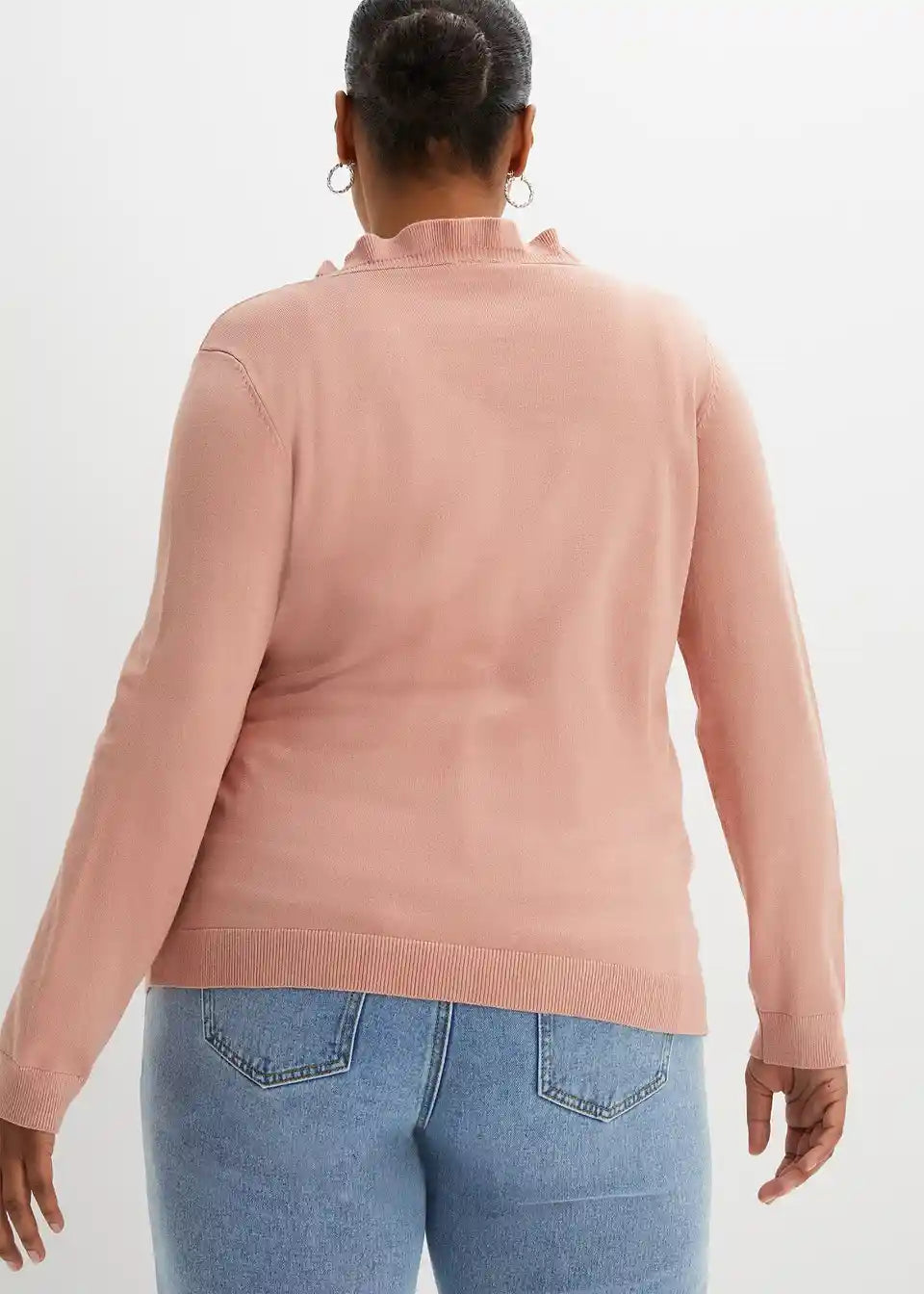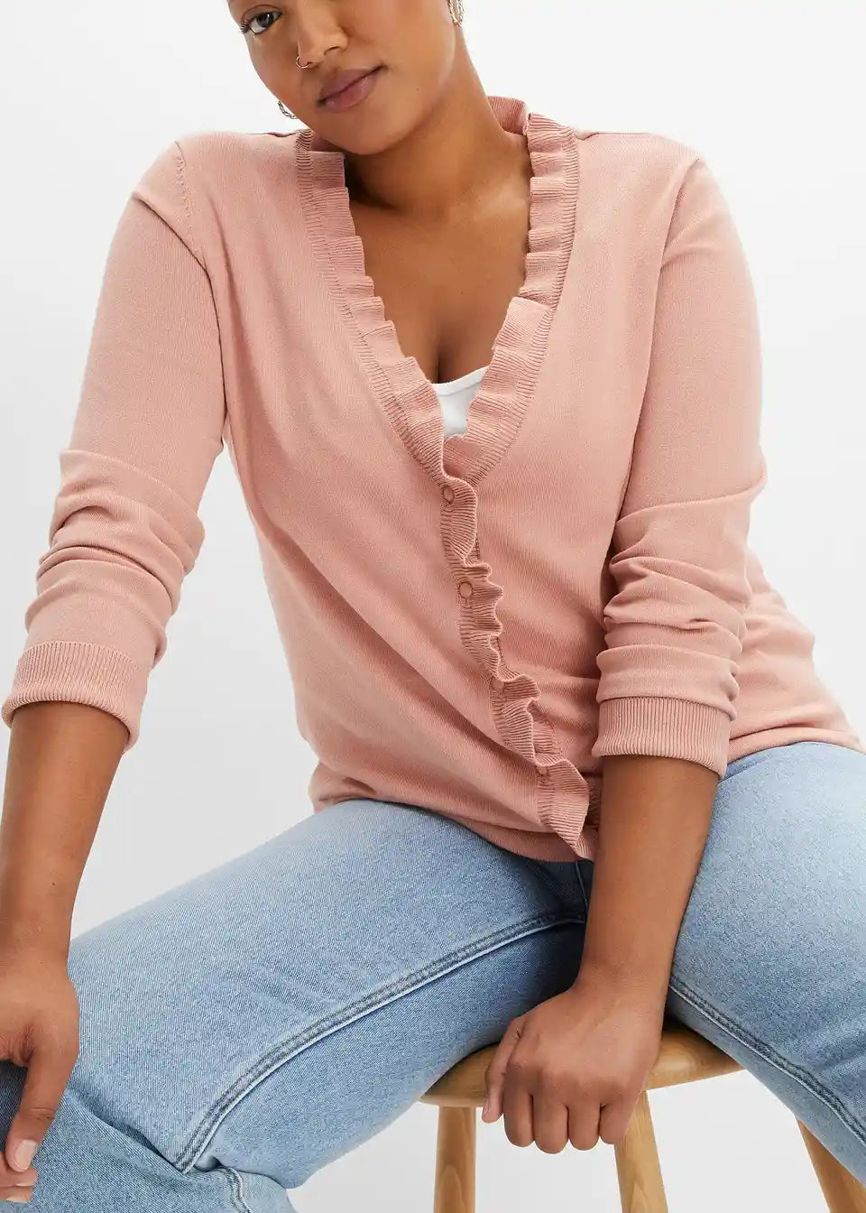 Udobna pletena jakna s razigranim ovratnikom s volančićima.
