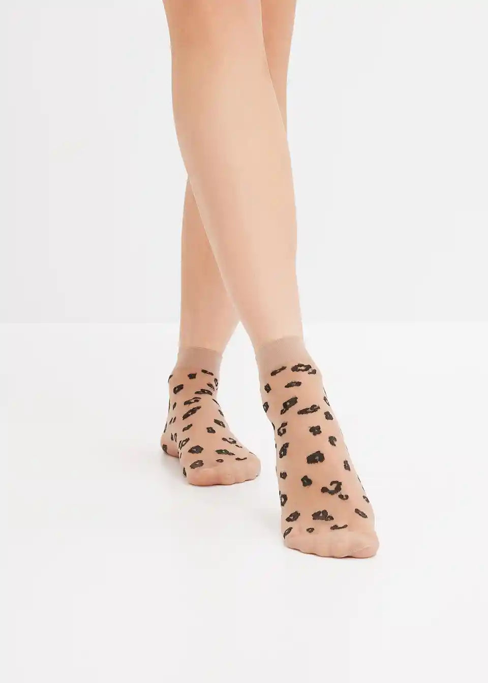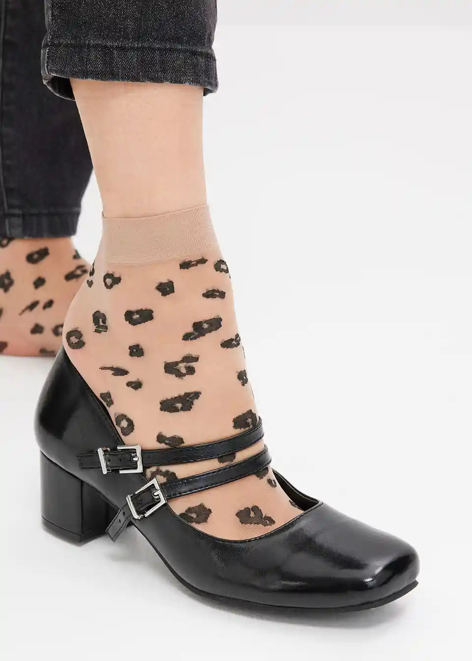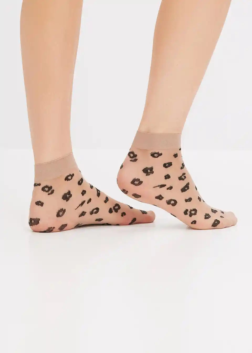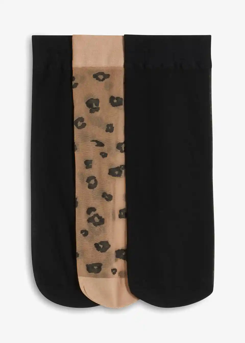 Fine čarape soknice u pakiranju od 3 komada s leopard uzorkom i jednobojne crne