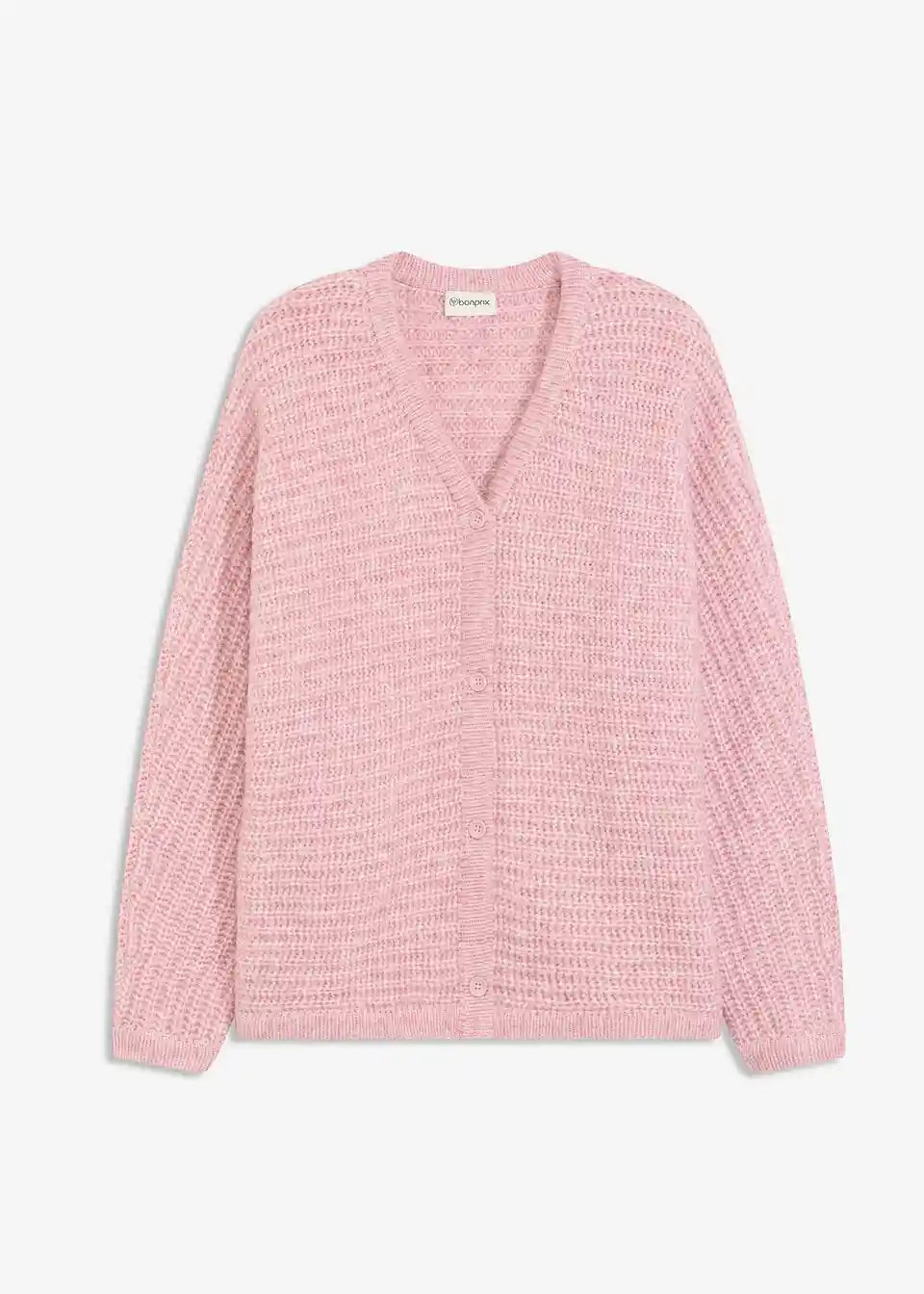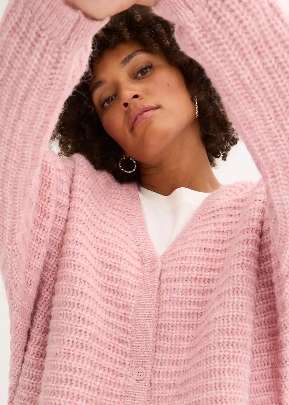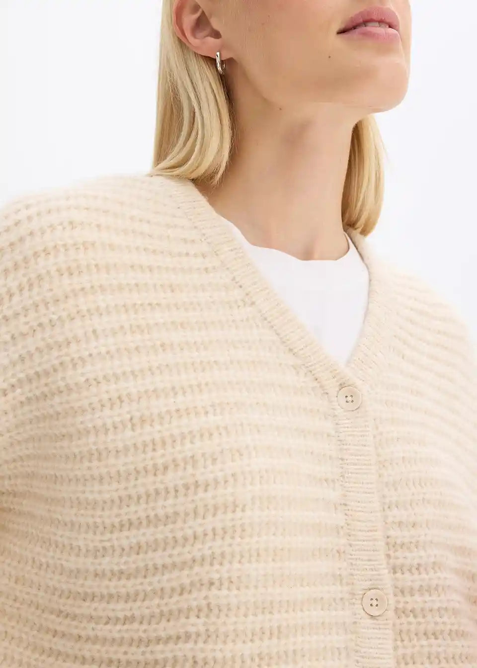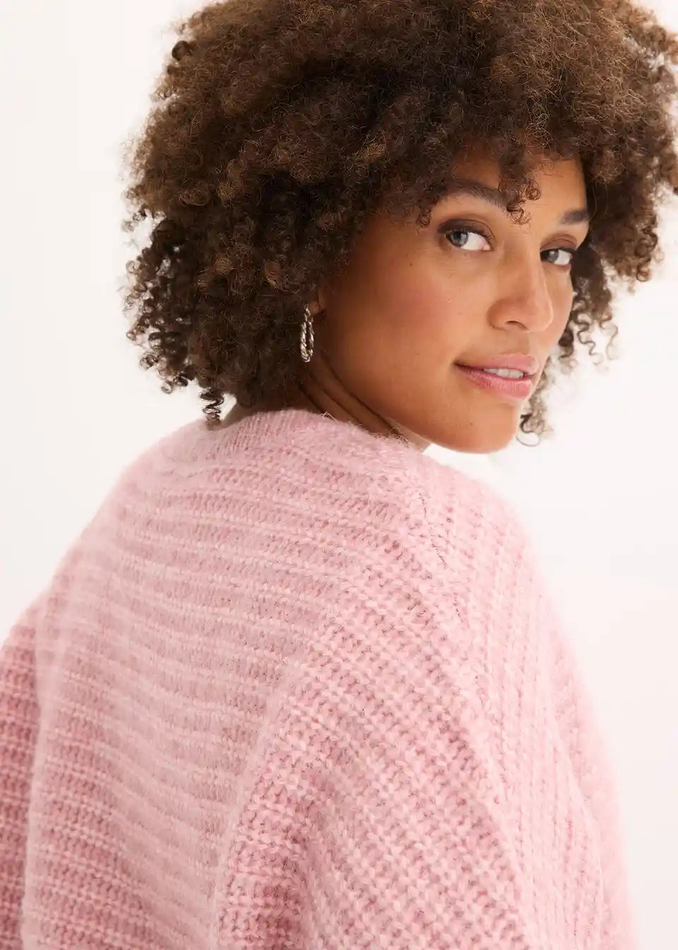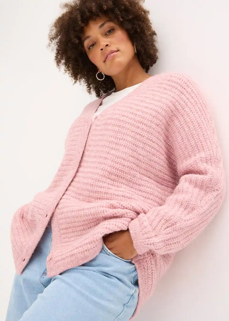 Plišasta pletena jakna s šišmiš rukavima i kopčanjem na gumbe
