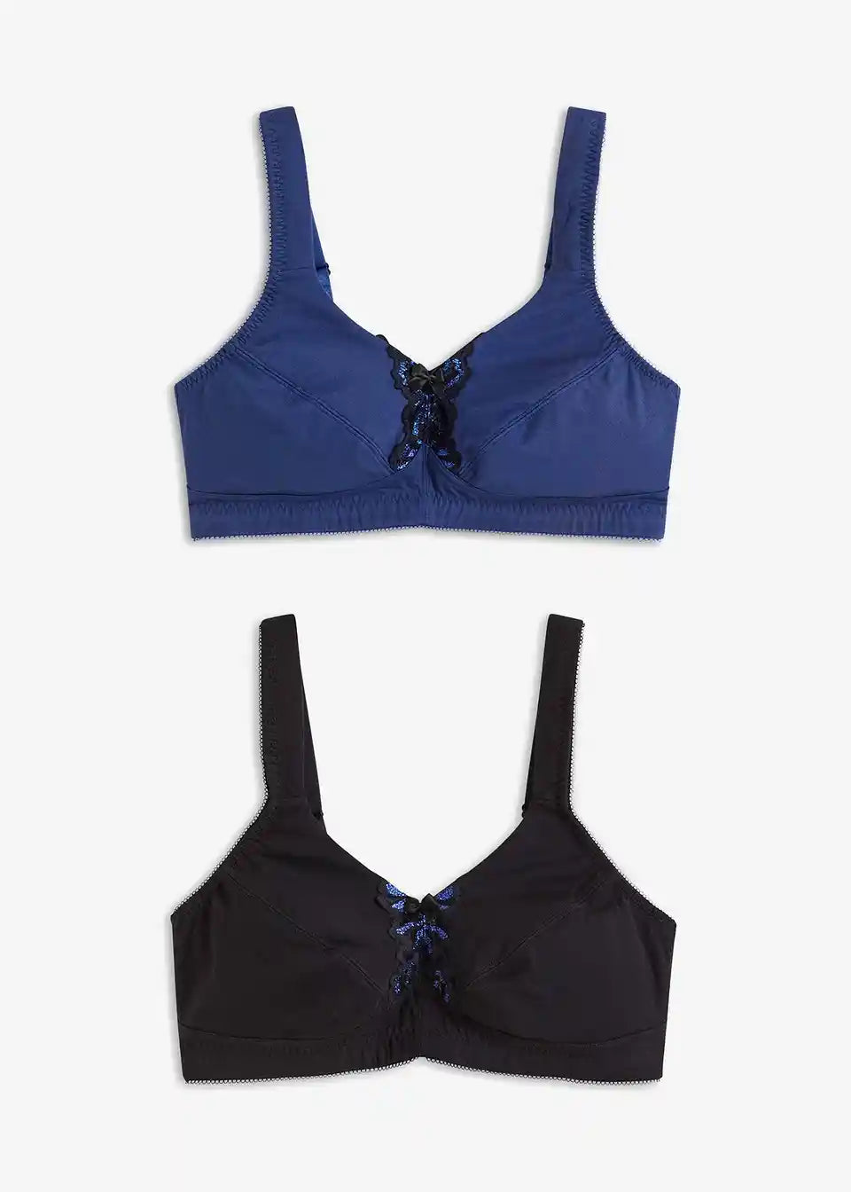 Grudnjak bez žica s mekanim organskim pamukom i čipkom u praktičnom pakiranju od 2 komada