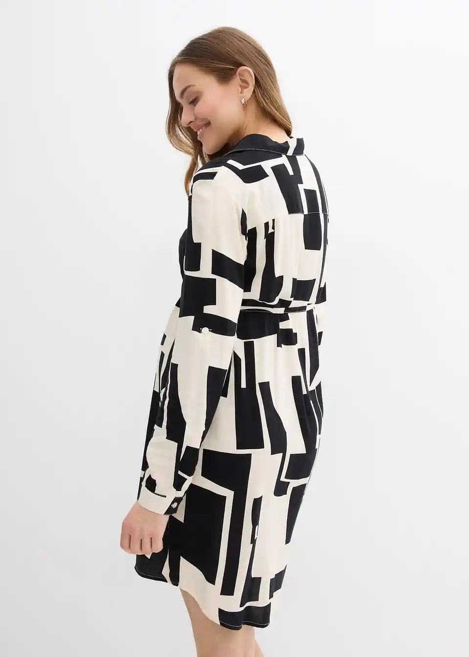 Duga košulja koja laska figuri od lepršave viskoze. Dužina do koljena s košulja-kragnom, kopčanjem cijelom dužinom, uskim odvojivim pojasom za vezanje i blago zaobljenim rubom. Rukavi su opremljeni manžetama i gumbima, a njihova se dužina može regulirati remenom i gumbima. Dugo kopčanje s gumbima omogućuje jednostavno dojenje te lagano oblačenje i skidanje.