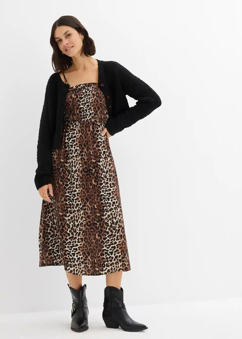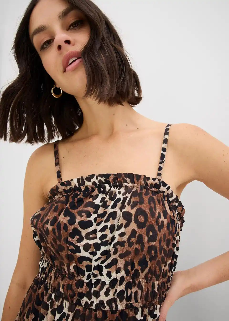 Moderna haljina na tregere s uzorkom leoparda