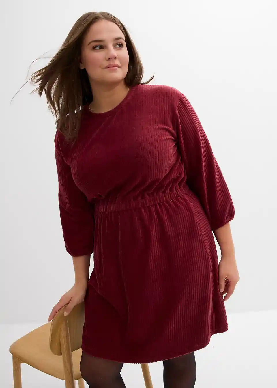 Lepršava, kratka cord-haljina s 3/4 rukavima